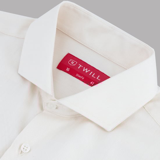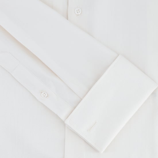Cream Herringbone Double Cuff Shirt | Slim Fit