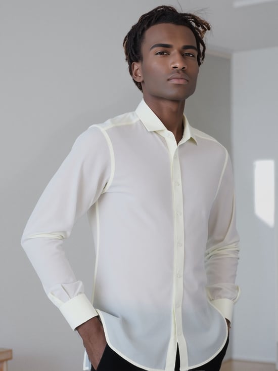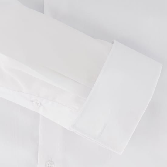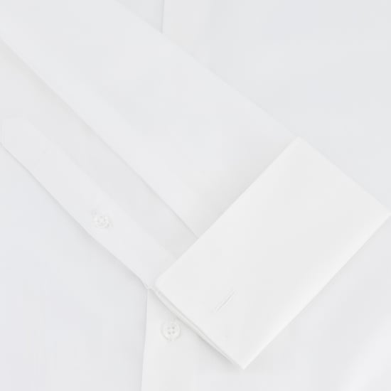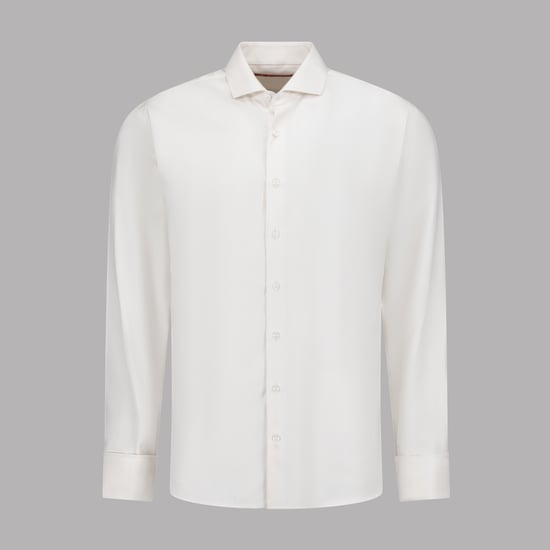 Cream Textured Cotton Double Cuff Dress Shirt | Slim Fit