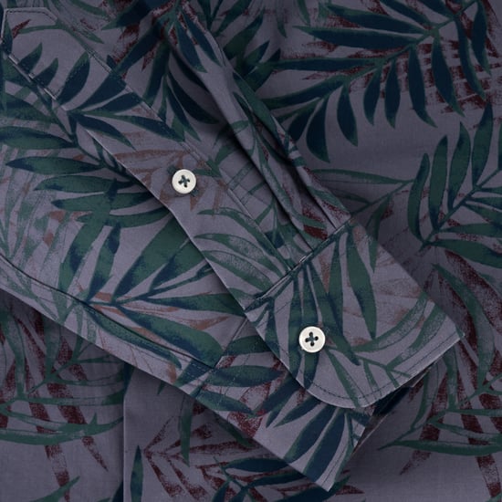 Charcoal Shirt with Elegant Floral Print | Slim Fit