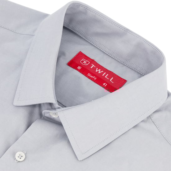 Grey Poplin Single Cuff Shirt | Slim Fit