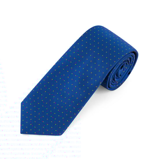 Royal Blue with Orange Polka Dots Tie & Pocket Square Set