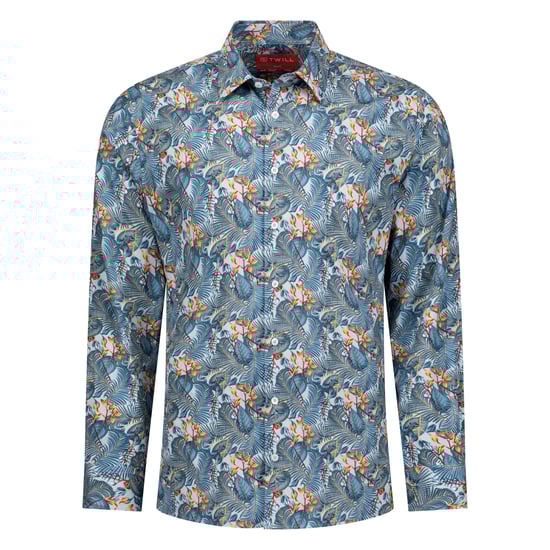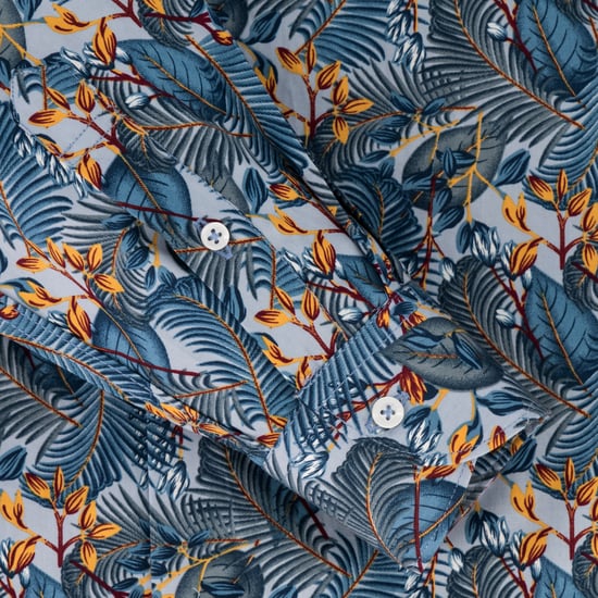 Exec Collection Yellow and Blue Printed Floral Blue Shirt | Slim Fit