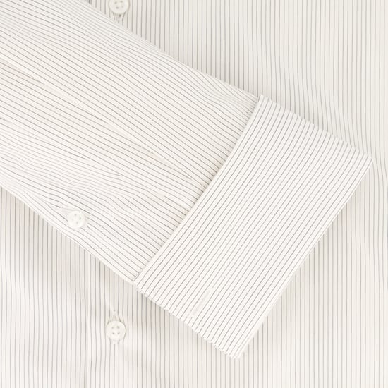 White Navy Pinstripe Twill Double Cuff Shirt | Slim Fit