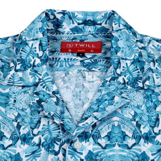 Blue leaf cuban collar short-sleeve shirt