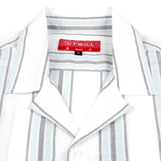 Aqua stripe cuban collar short-sleeve shirt