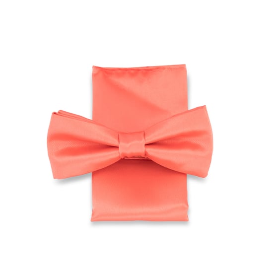 Elegant Coral Satin Finish Bow Tie and Matching Pocket Square Set