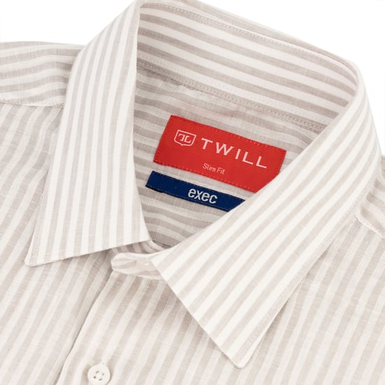 Executive Pure Linen Dove Grey Striped Shirt | Slim Fit