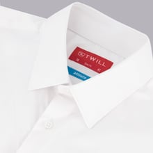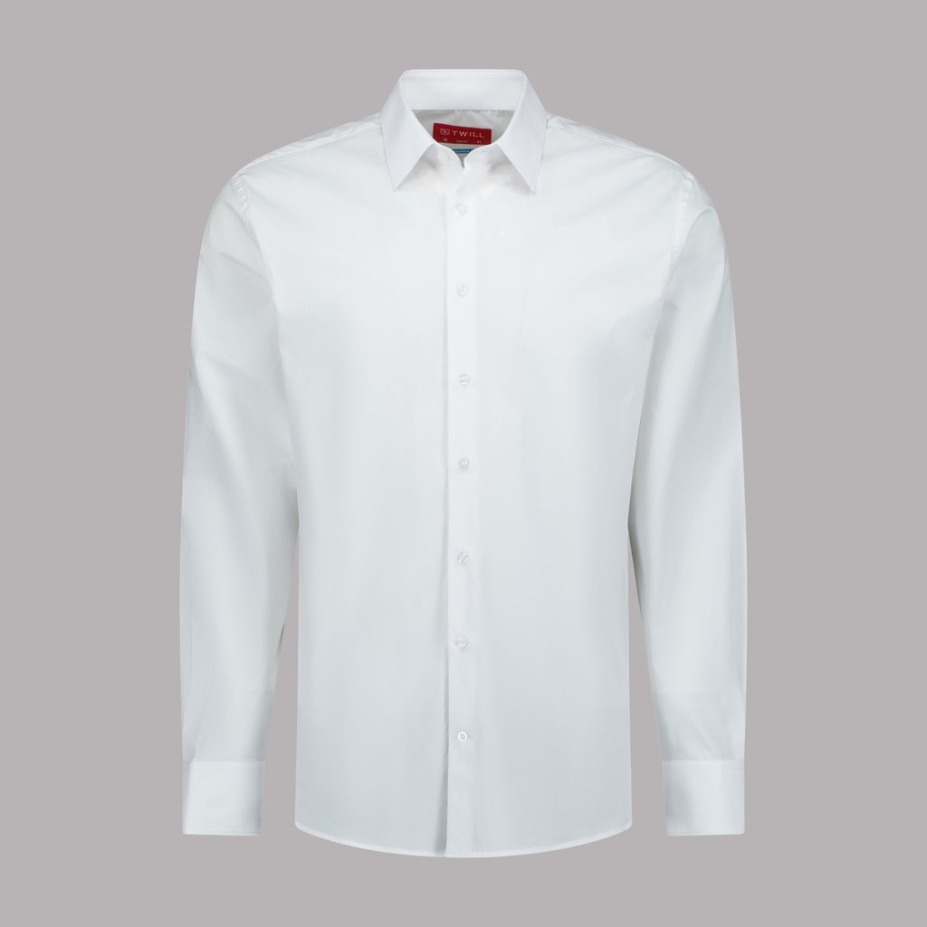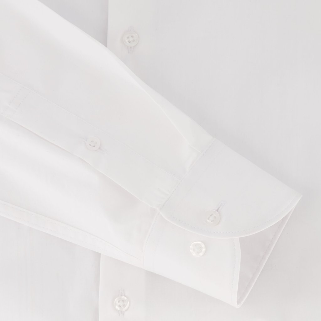Discover refined sophistication with this Athlete Collection white shirt, crafted from a premium poplin weave cotton blend with added stretch for comfort and flexibility. Designed with a slim fit silhouette, it features a semi cut-away collar with collar stays for a polished look, complemented by single cuffs and meticulously constructed French side and arm hole sleeves. This shirt combines timeless style with practical functionality, offering easy care and ironing properties, and is machine washable at 30 degrees for effortless maintenance. Perfect for the modern gentleman seeking both elegance and convenience in formal wear.