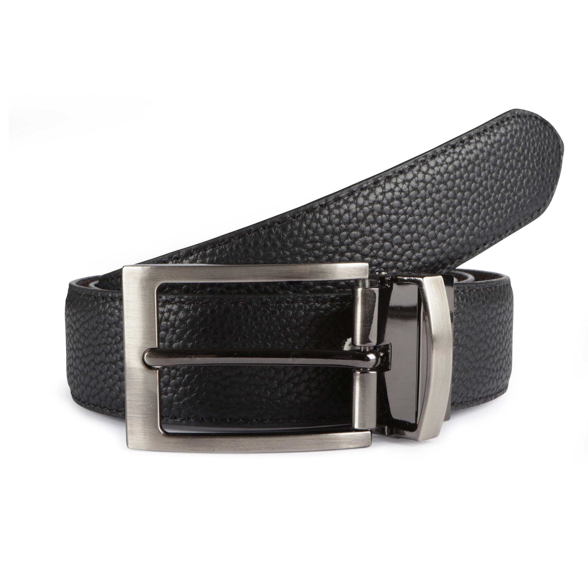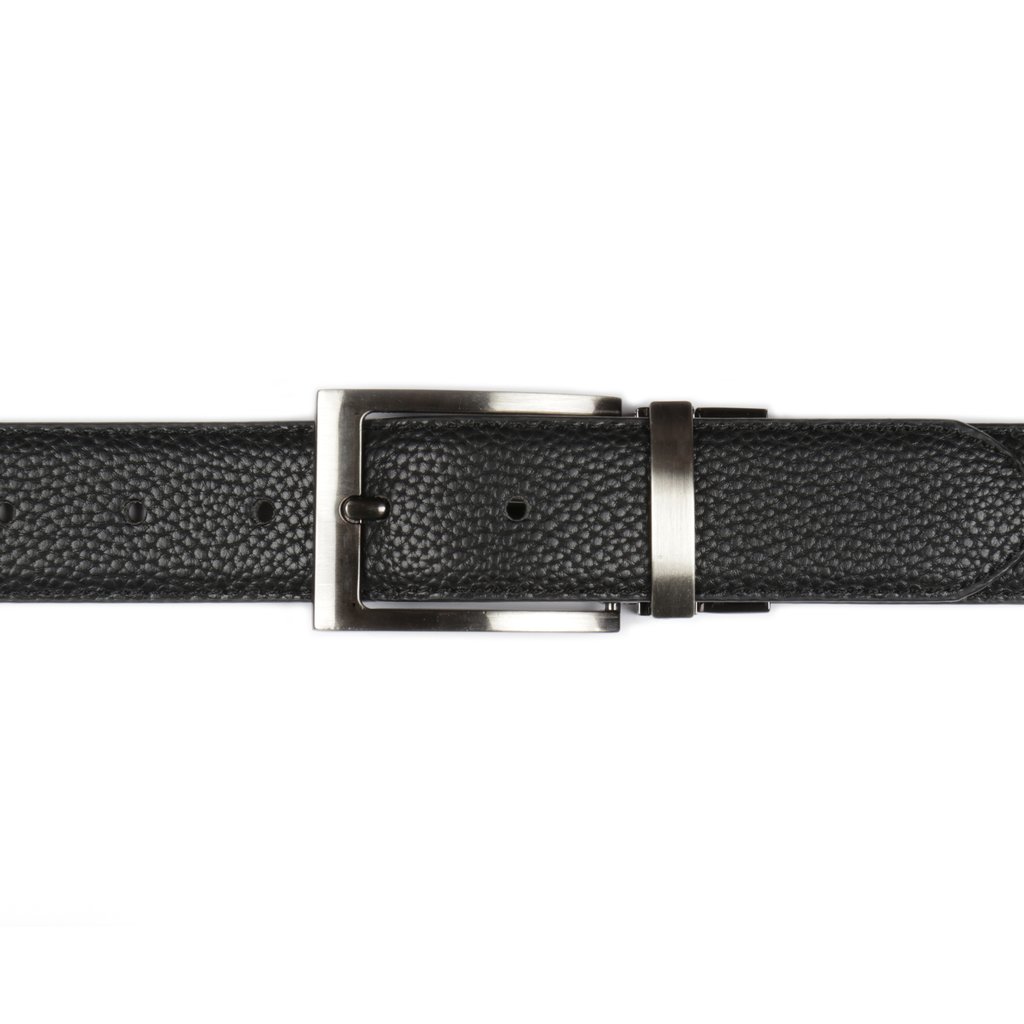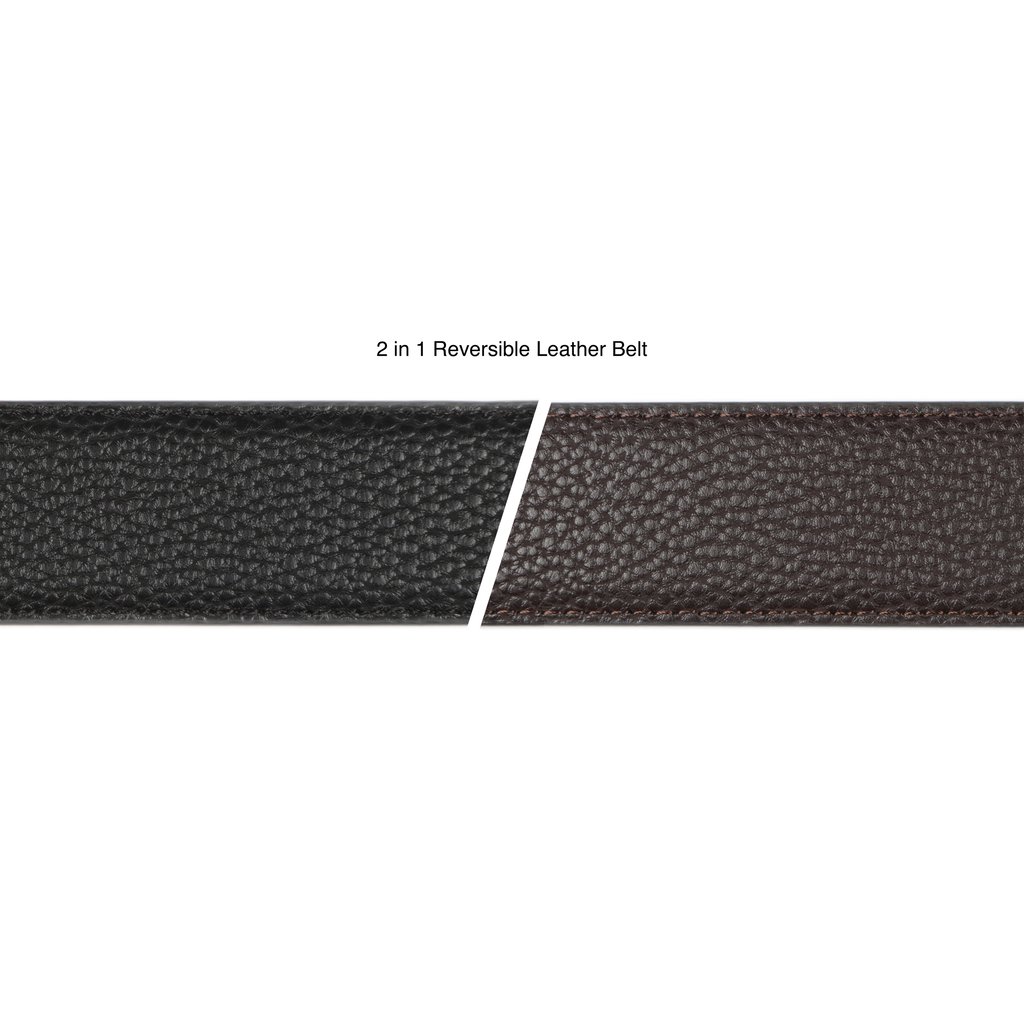 Make a statement with this black and brown reversible formal belt, featuring a classic silver buckle and embossed surface interest. The reversible design allows you to easily switch between the two colours, while the embossed surface adds a touch of sophistication and elegance. This belt is a great accessory for any formal occasion, offering a stylish and practical way to add a touch of sophistication to your outfit. The reversible design and embossed surface make it a unique and eye-catching accessory that’s sure to turn heads.