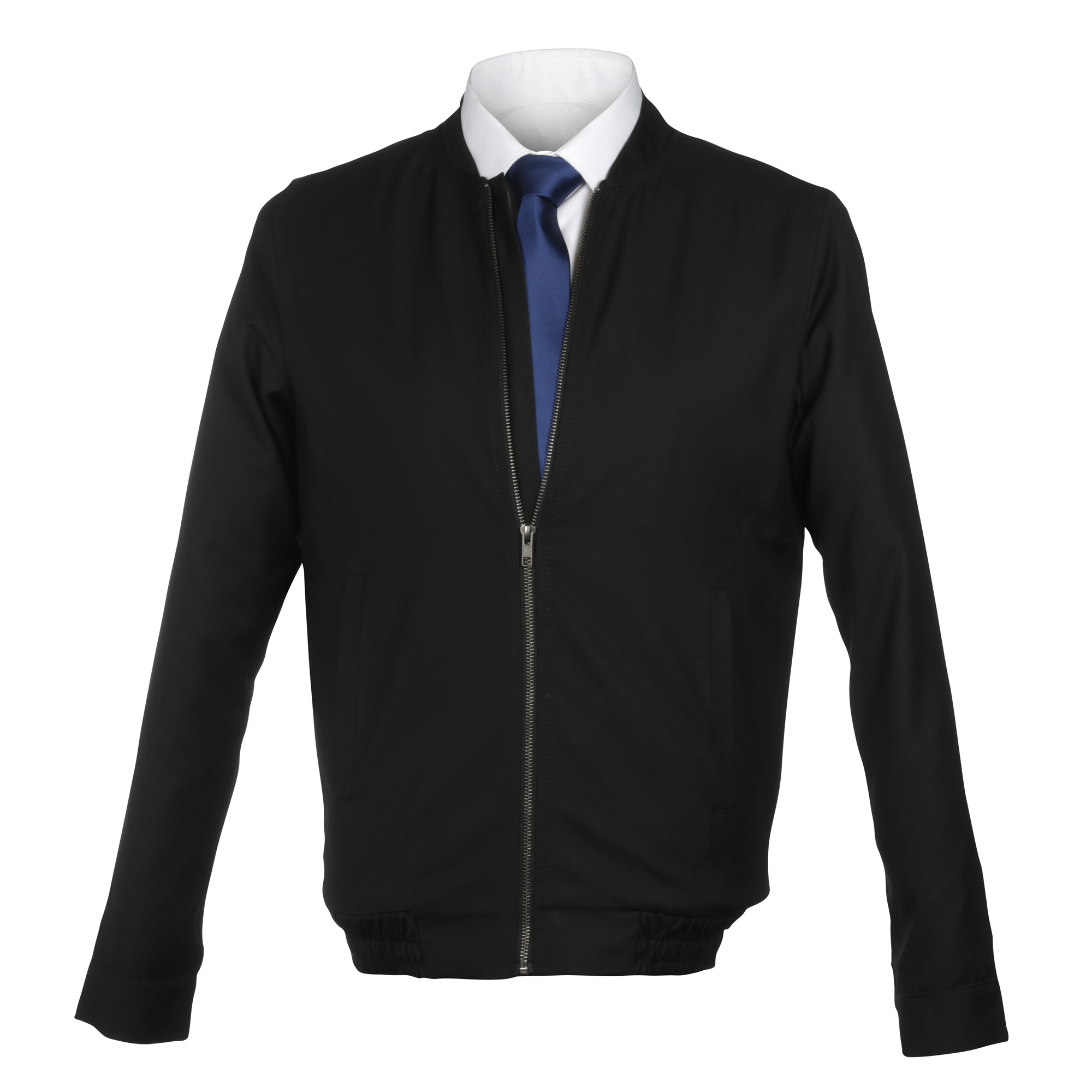- Fitted silhouette with ribbed collar and cuffs