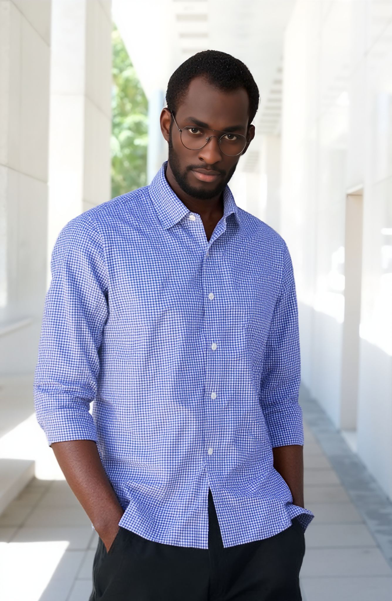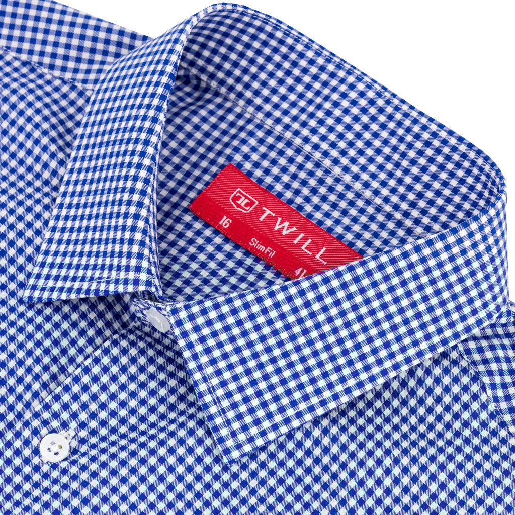 - Mini check pattern in blue