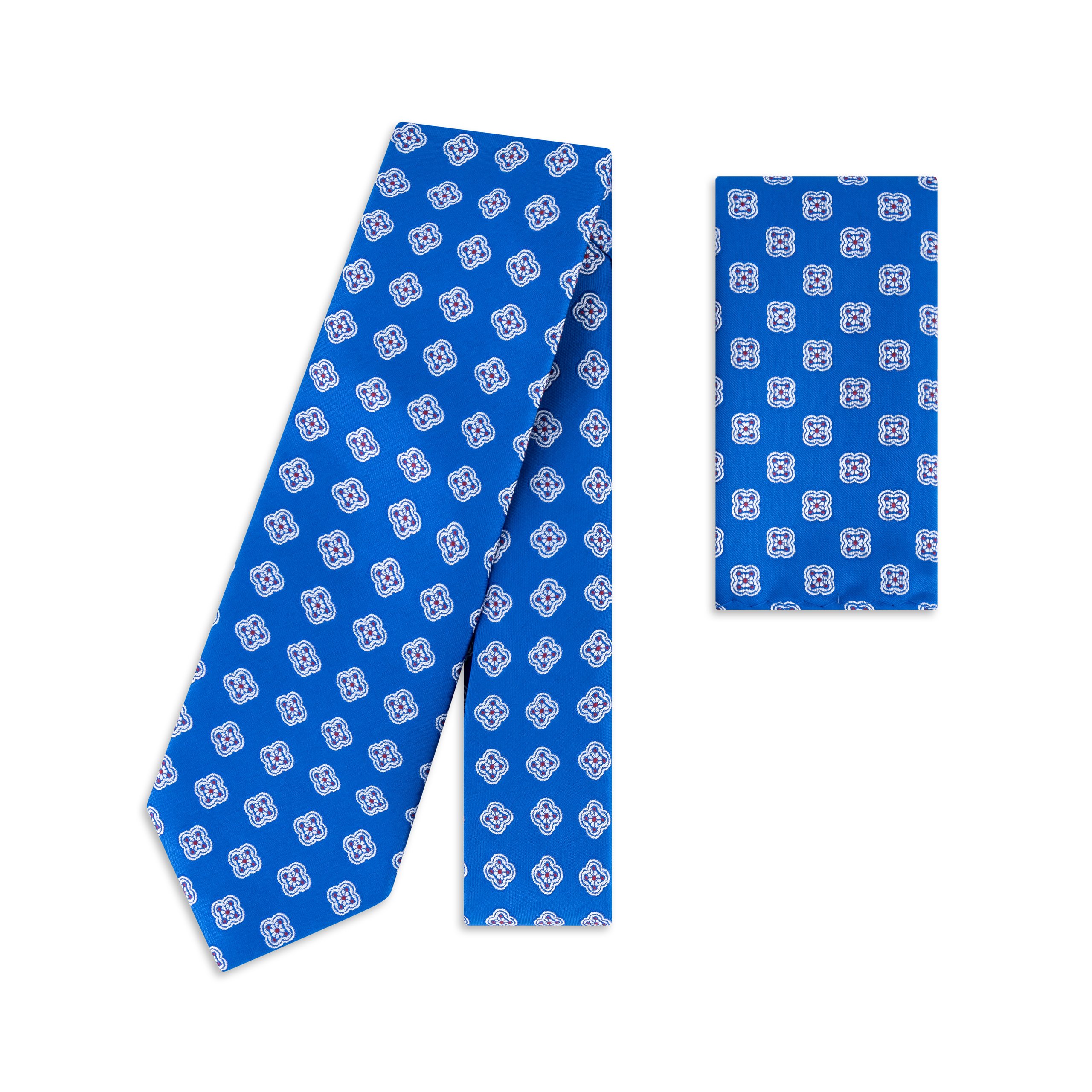 Elevate your sartorial standards with the Blue with White Woven Geometric Tie and Matching Pocket Square Set, a striking embodiment of contemporary refinement. Crafted from 100% premium microfibre, this set offers a luxurious texture and lasting quality, featuring a deep blue base accentuated by a precise white geometric weave that exudes understated sophistication. The tie, with its 7.5cm width and 150cm length, provides a classic yet versatile profile, perfect for formal occasions or sharp professional attire. Paired with a coordinating pocket square, this ensemble delivers a harmonious and polished presentation. Maintain its impeccable condition with the option of hand washing, though dry cleaning is advised for the finest care. An essential for the modern gentleman who values precision and elegance in equal measure.