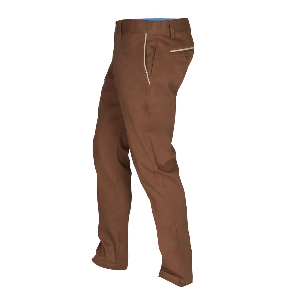 Stay stylish and stress-free with our Brown Easy Care Chino Trousers. Featuring a slim fit design, 4-pocket style, and tonal side pocket trim, these trousers are crafted from cotton stretch for comfort and durability. The easy care fabric ensures a low-maintenance wardrobe essential.