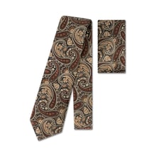 Classic and warm, this Brown Woven Large Paisley Tie & Pocket Square Set adds timeless elegance to your formalwear. The deep brown tone is complemented by a bold paisley design, woven for texture and visual interest. Crafted from premium microfibre and paired with a matching pocket square, this set is ideal for weddings, evening events, or refined business attire.