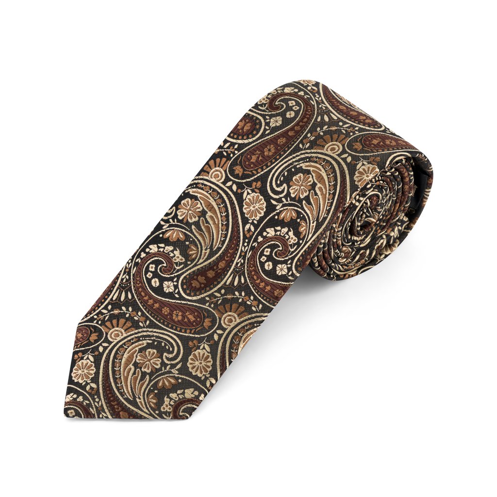 - Design: Rich brown base with large woven paisley pattern