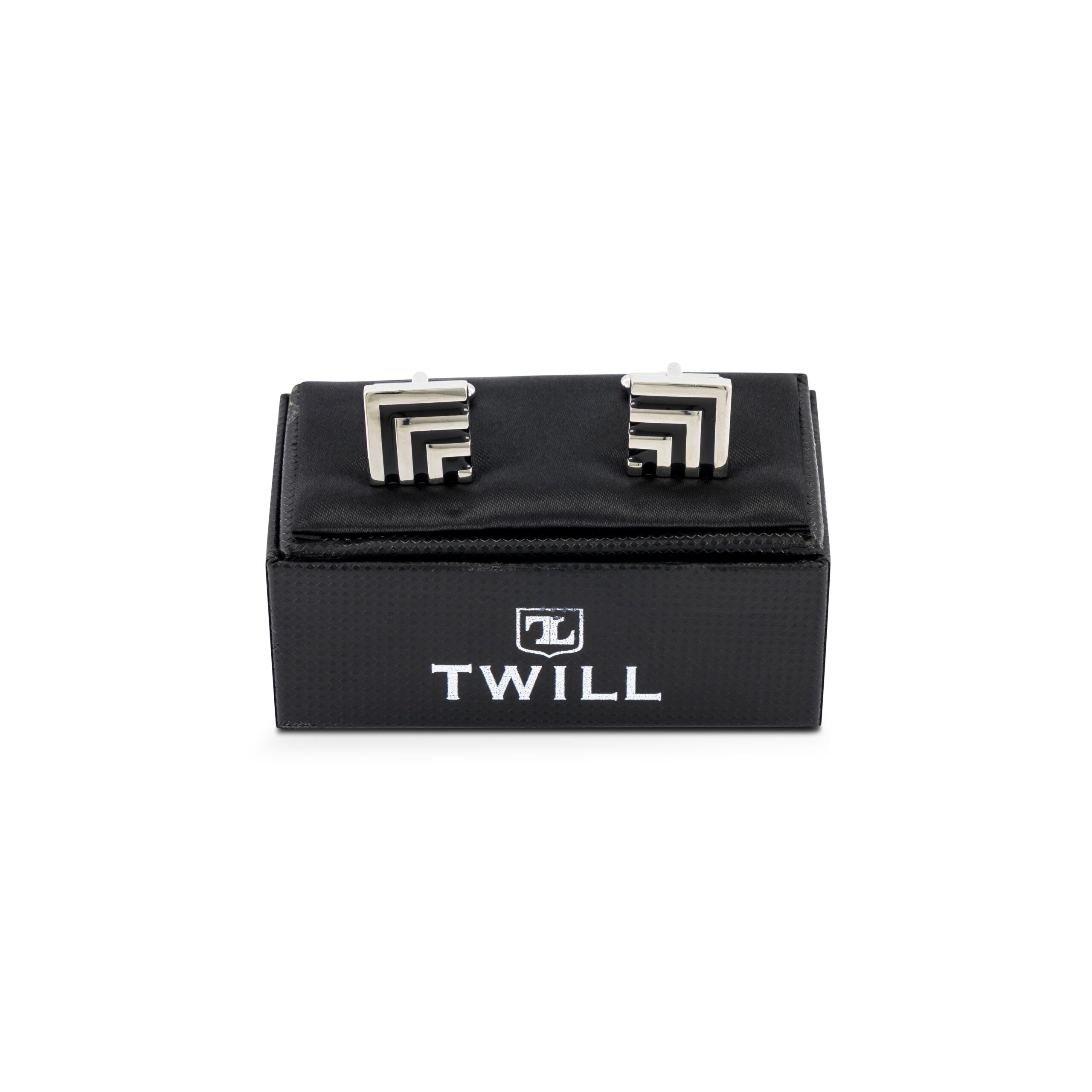 Refine your formal look with our Brushed Silver Square Cufflinks, featuring striking black enamel inlays. Crafted from premium silver with a brushed finish, these cufflinks offer a contemporary aesthetic with their matte texture and sharp geometric design. The black enamel inlays provide a bold contrast, making them a perfect accessory for weddings, galas, or professional settings. With a secure swivel-back closure, they ensure both style and functionality. Beautifully packaged in an elegant gift box, these cufflinks are an ideal gift or a sophisticated addition to your collection.