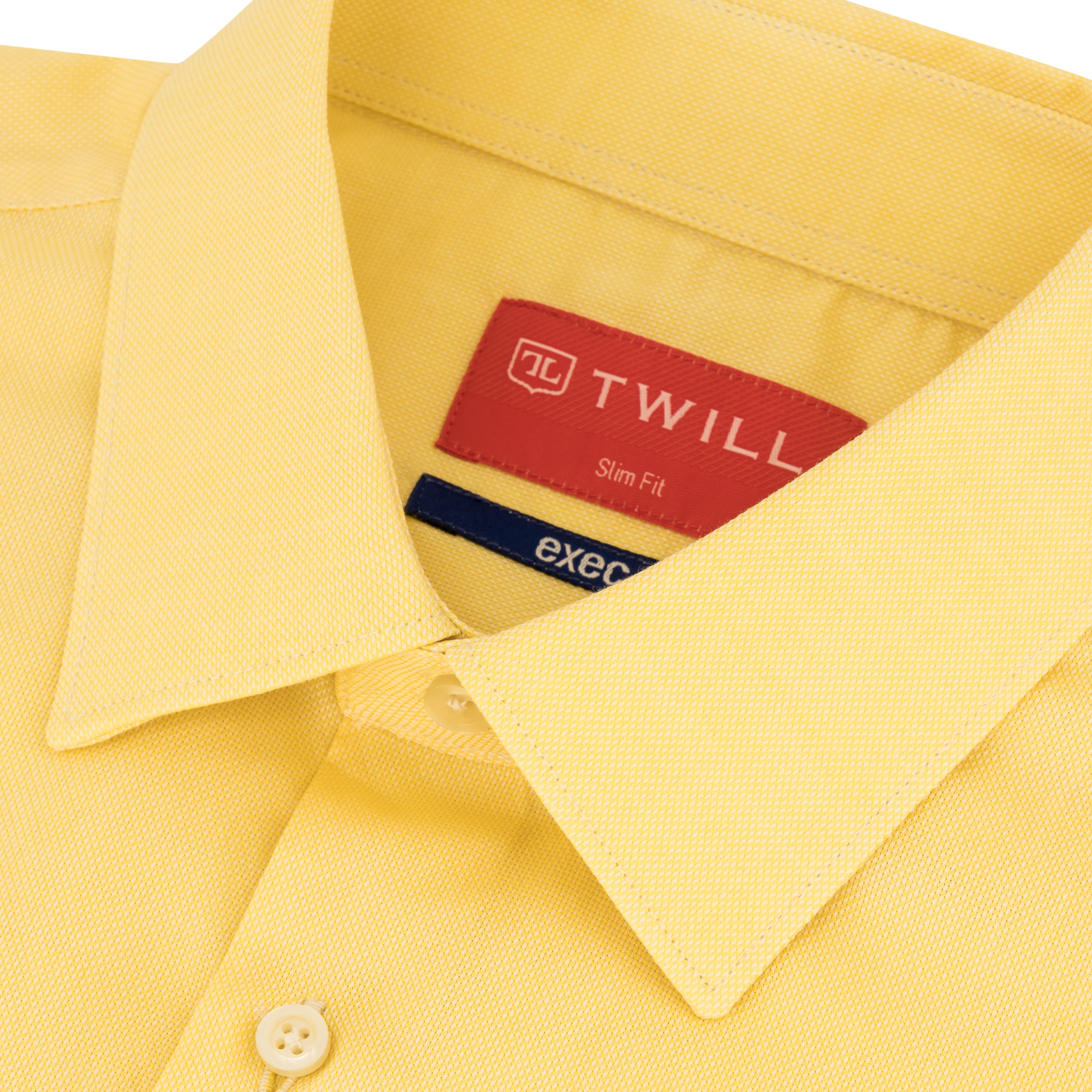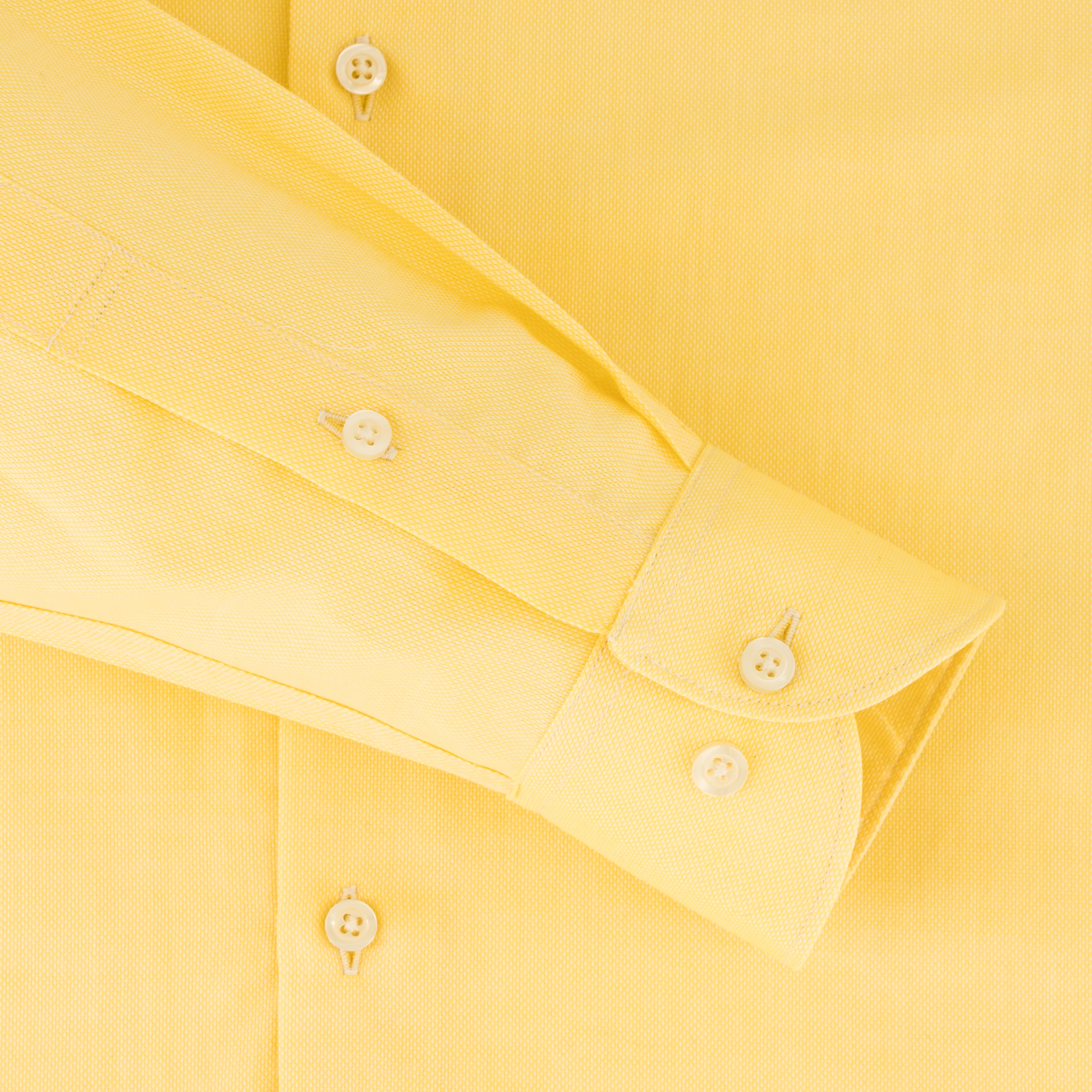 Brighten up your wardrobe with this canary yellow dress shirt. Made from 100% superior cotton, it features a slim fit and semi-cut away collar for a stylish, modern look. The oxford weave gives it a smooth, crisp texture, while the single cuffs add a touch of elegance. The inset collar stiffeners ensure a crisp, sharp collar point that stays in place all day. Perfect for business meetings or formal events where you want to add a splash of colour to your outfit.