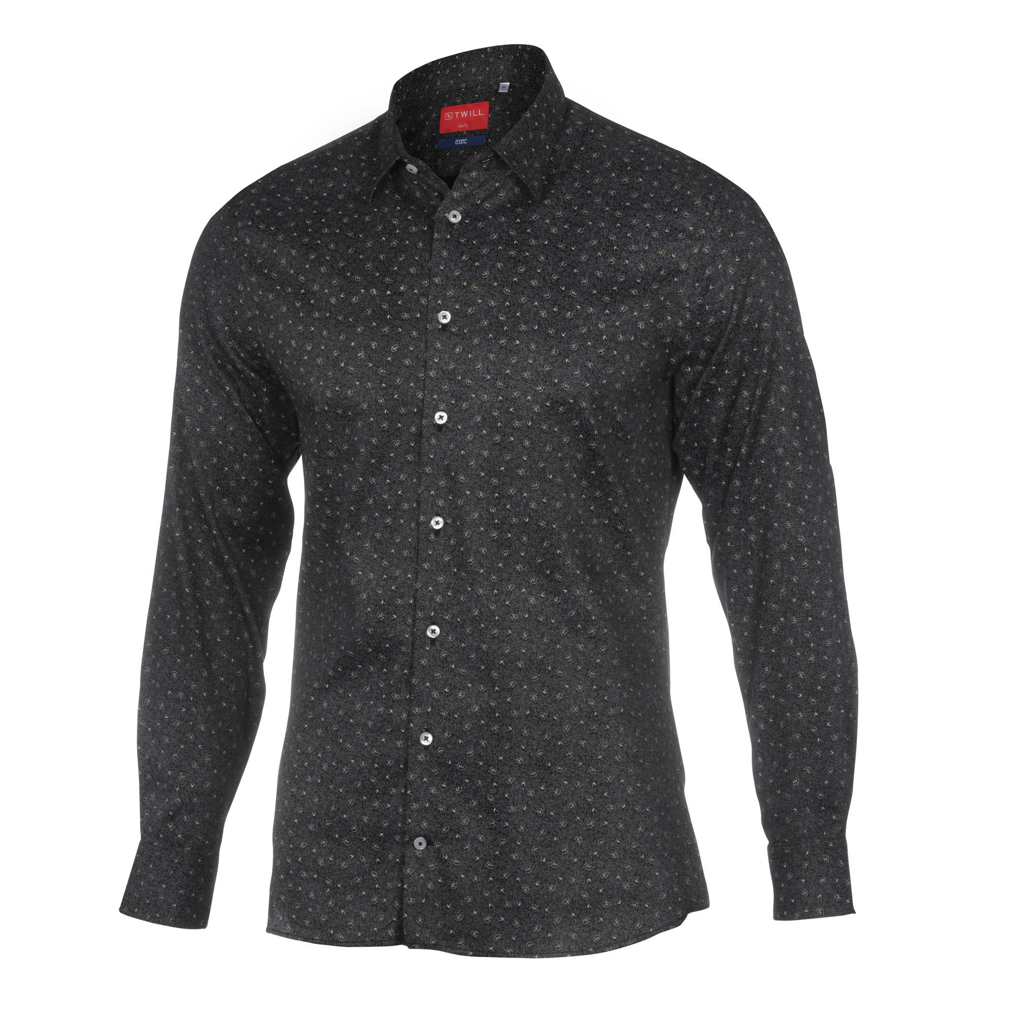 Upgrade your wardrobe with our 100% superior cotton slim fit shirt from the executive range. The charcoal grey fabric showcases an elegant floral design, perfect for formal and special occasions. The semi cut-away collar and single cuffs add a refined touch, ensuring you make a statement with style and class.