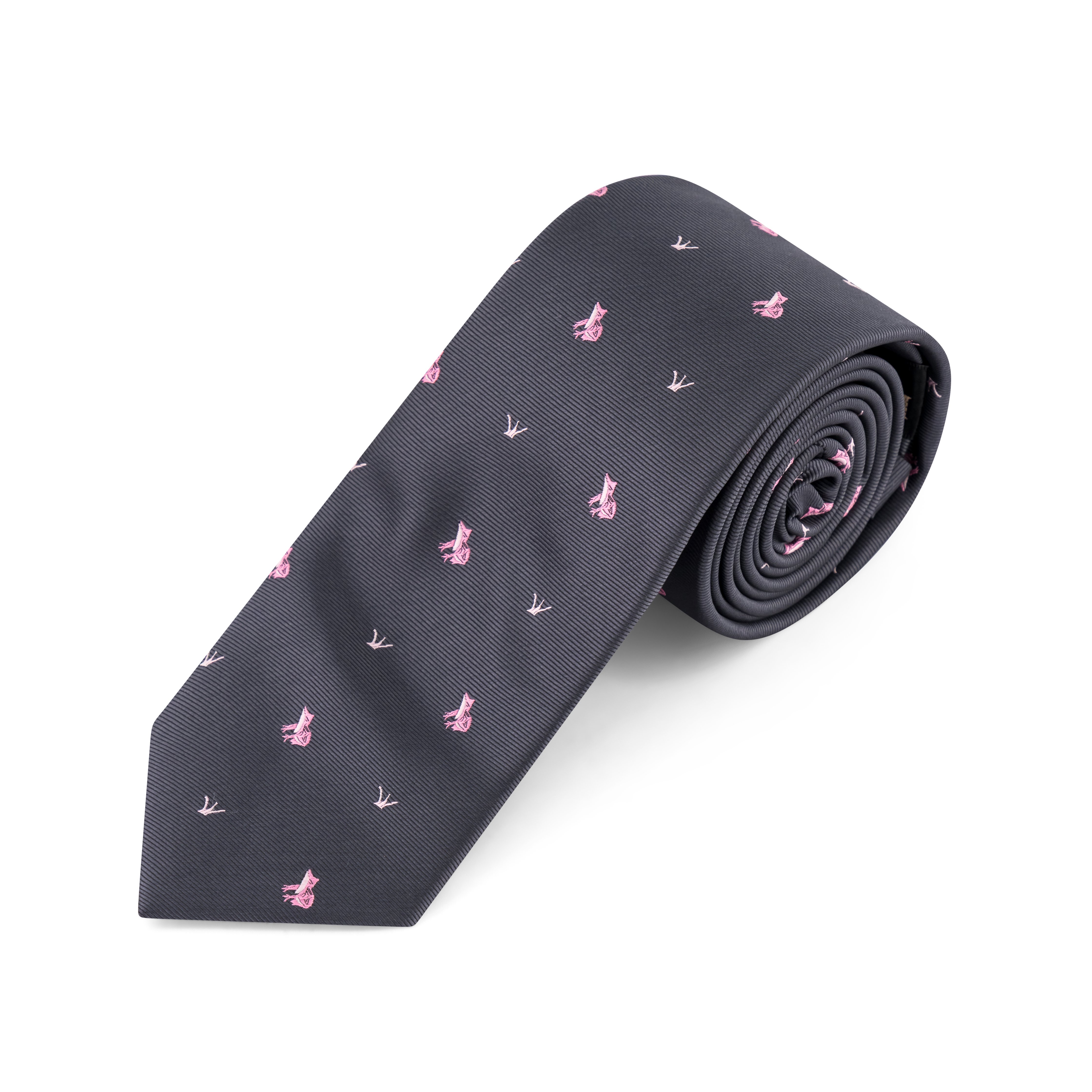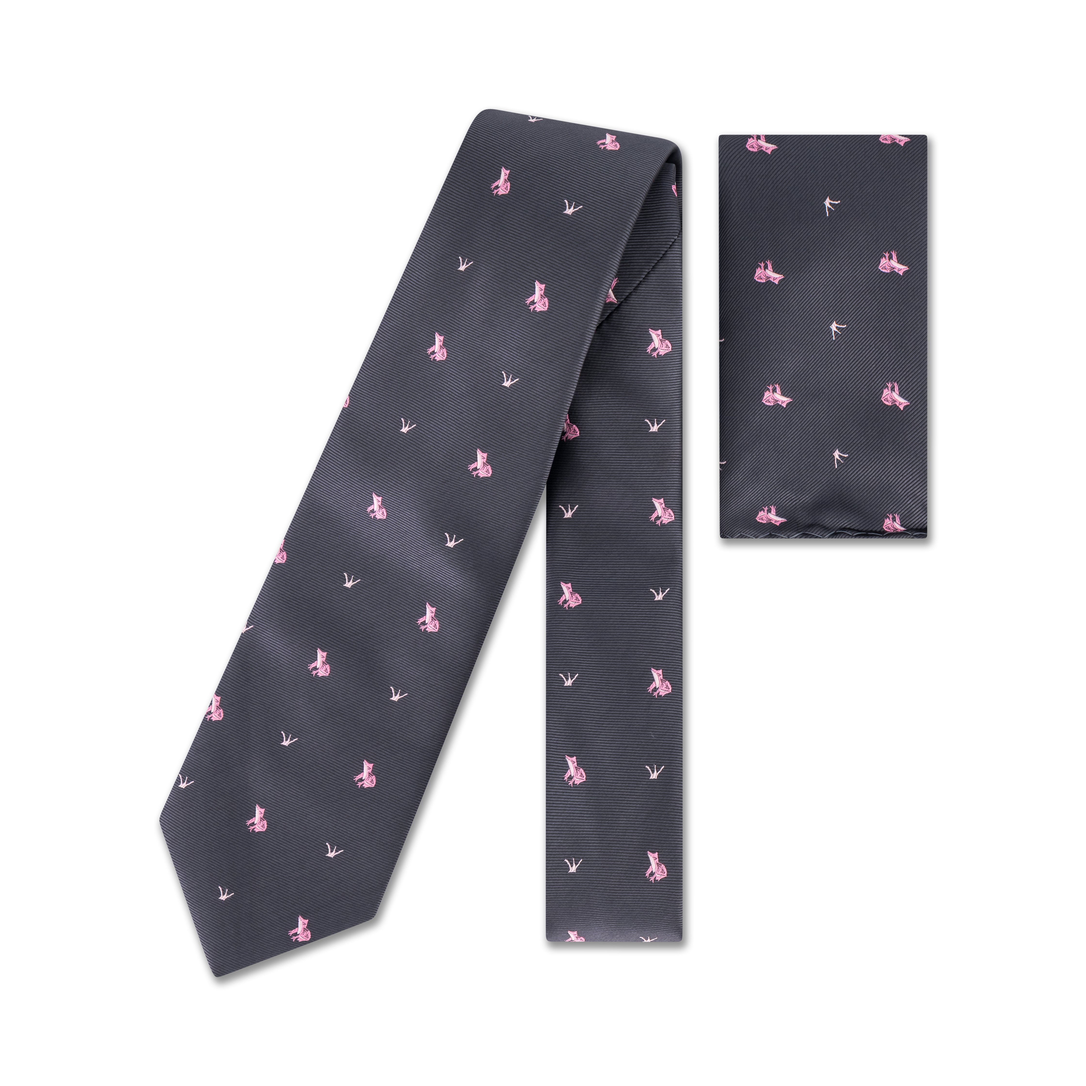 Distinctive and refined, this tie features a dark base adorned with small, evenly spaced pink embroidered frog motifs. The subtle yet playful design adds a touch of personality while maintaining a polished, versatile look—ideal for formal events, business attire, or standout everyday wear.