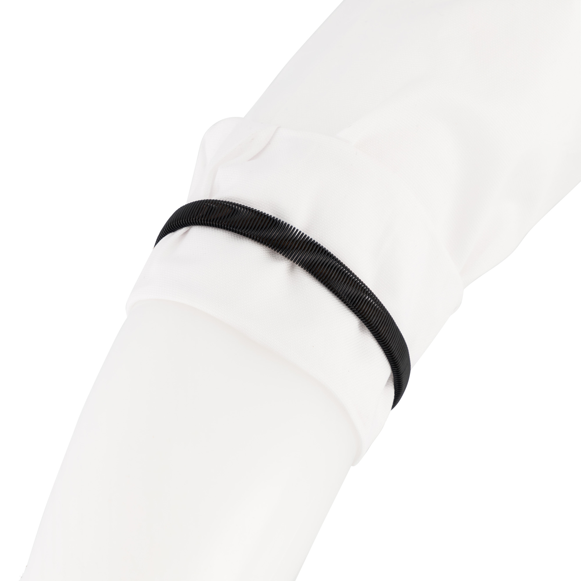 A timeless accessory for gentlemen, our black shirt sleeve armband lifts sleeves for comfort during work or activities.