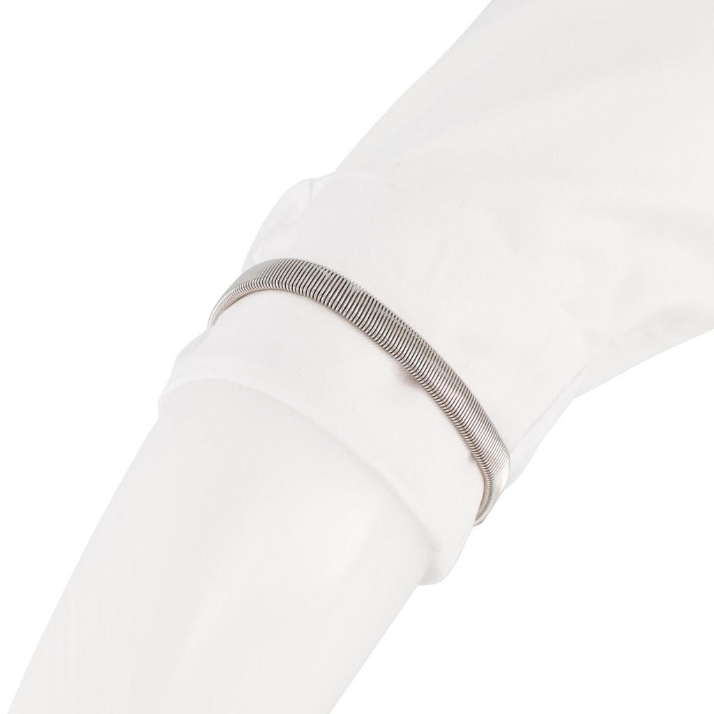 A timeless accessory for gentlemen, our silver shirt sleeve armband lifts sleeves for comfort during work or activities.