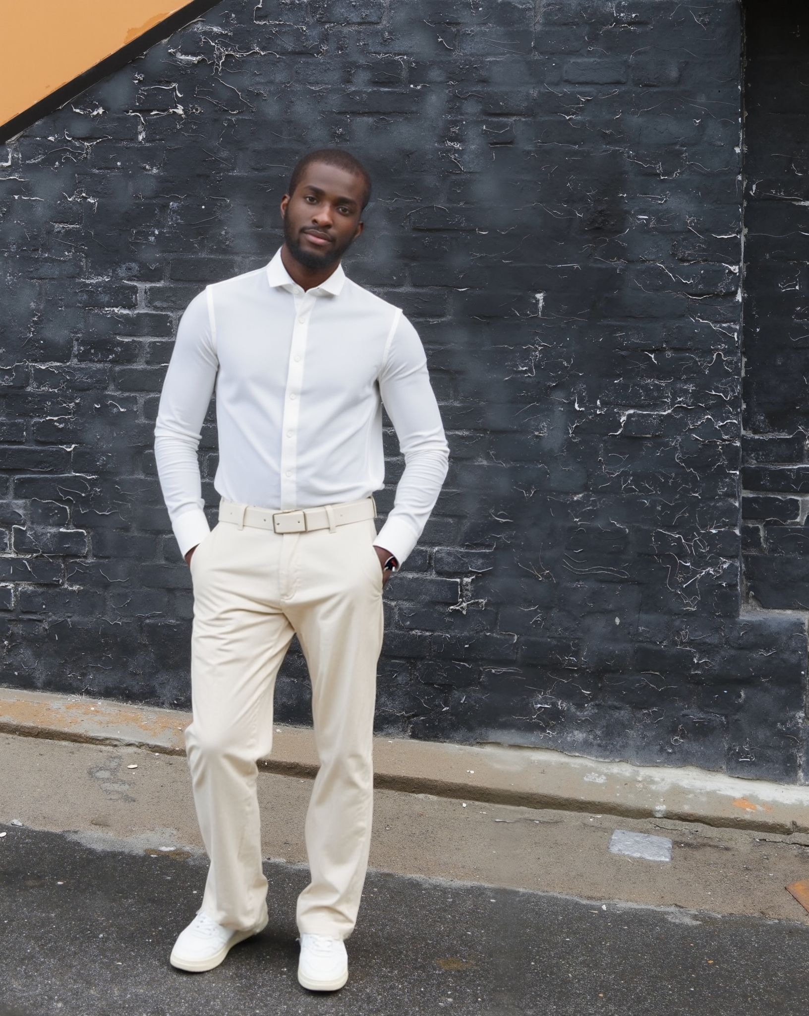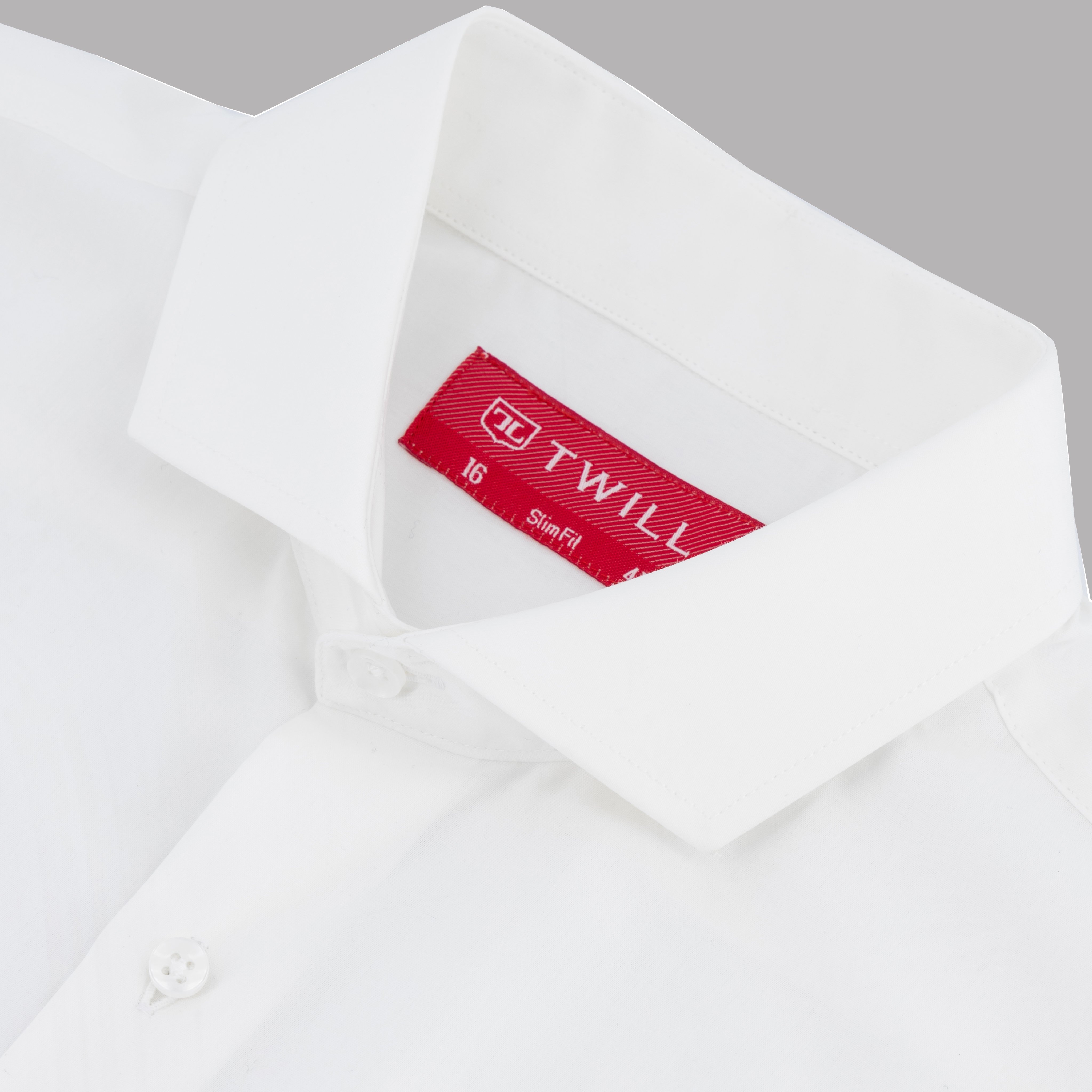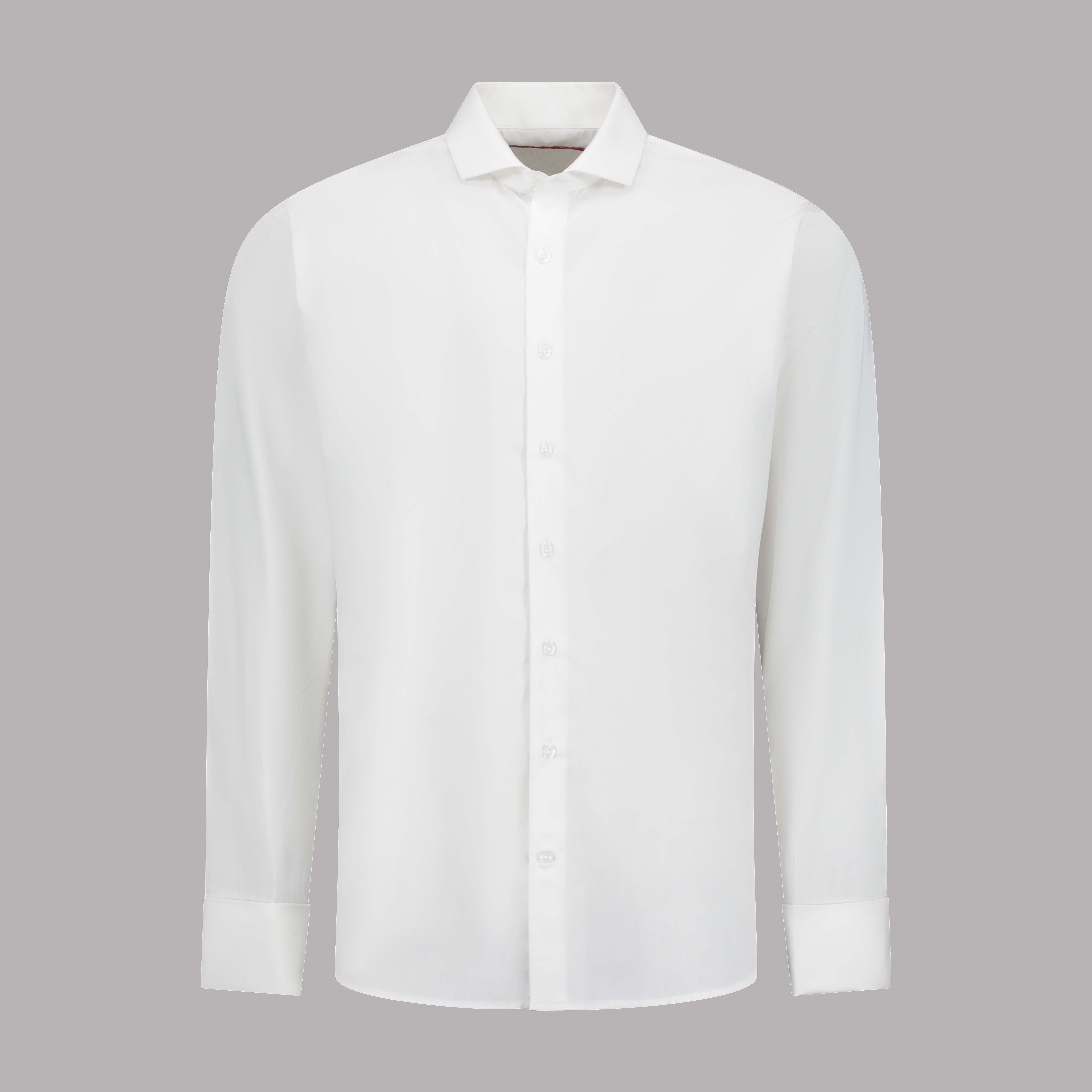 This cream slim fit shirt is tailored from 100% cotton in a smooth poplin weave, offering a crisp, breathable feel ideal for formal occasions. The full cutaway collar with inset collar stays delivers a sharp, modern look, while double cuffs add a touch of sophistication. French seams on the armholes and sides enhance durability and comfort. Designed for a sleek silhouette, this shirt is best cared for with a gentle machine wash at 30 degrees and ironing while damp. Avoid tumble drying to maintain its structure and finish.