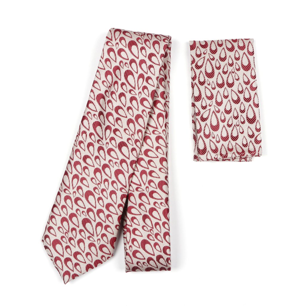 Elevate your formal style with our Cream and Red Woven Teardrop Tie and Pocket Square Set – the perfect pair for achieving a coordinated, polished look.