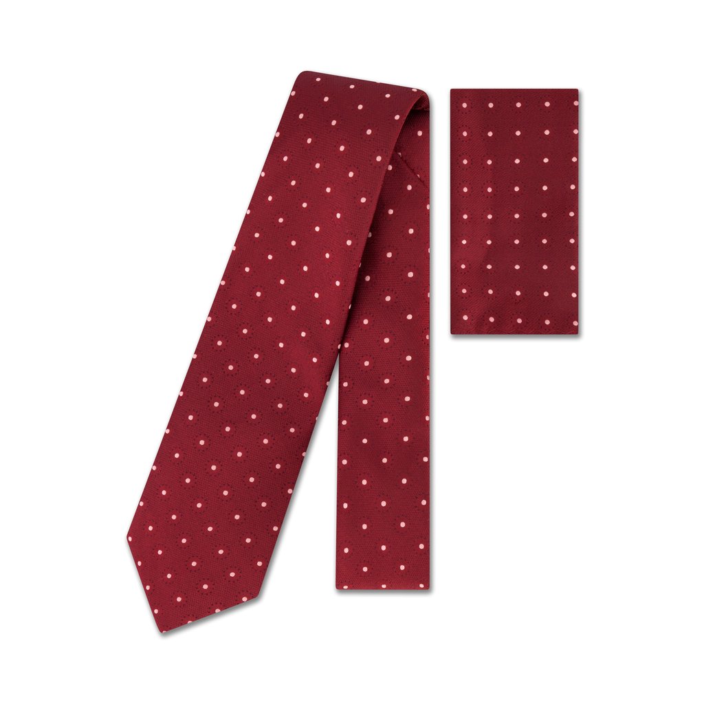 A timeless classic with a bold twist, this tie features crisp white polka dots evenly spaced across a deep red base. The rich colour and clean pattern make it a versatile choice—perfect for weddings, business attire, or adding a touch of personality to everyday suiting.