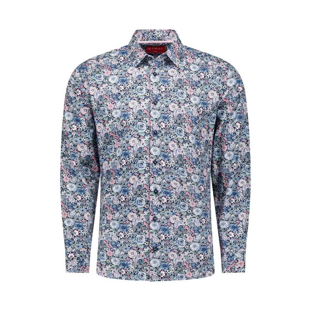 Elevate your wardrobe with the Exec Floral Slim Fit Shirt in a vibrant blue and pink floral pattern. Designed for the executive who appreciates quality and style, this shirt is made from 100% superior cotton, ensuring breathability and comfort. Its slim fit silhouette is perfect for a polished appearance, while the semi-cutaway collar, enhanced by sewn-in collar stays, guarantees a neat, professional look all day. The single cuffs offer a timeless appeal. Care for this shirt is easy: machine wash at 30 degrees, iron while damp for the best results, and avoid tumble drying to preserve the shirt’s luxurious feel and vivid colours.