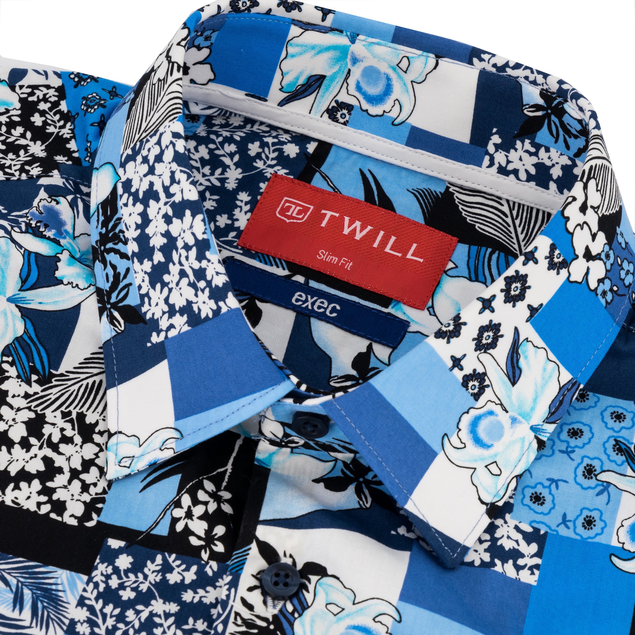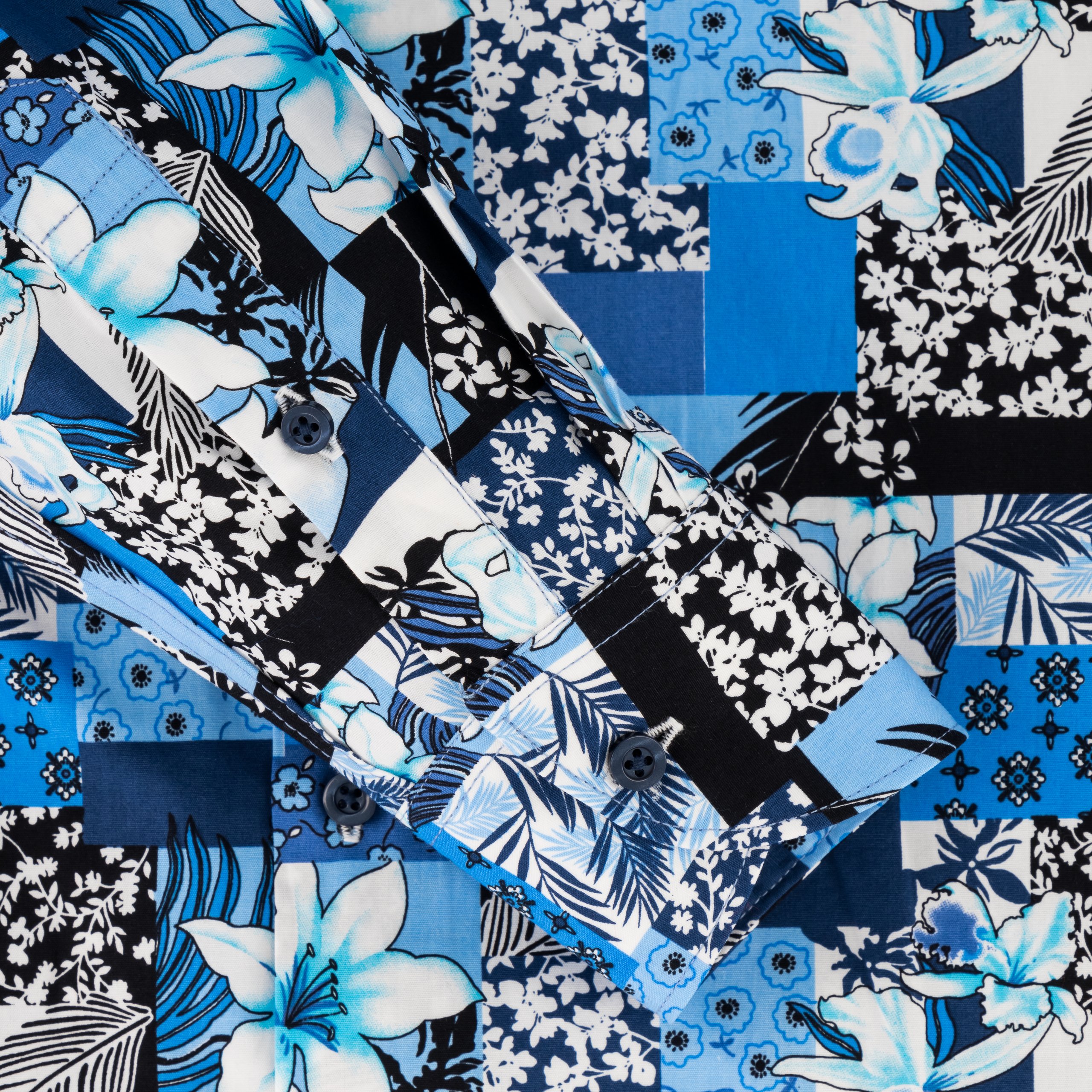 Elevate your executive wardrobe with this slim-fit, blue tonal, floral patchwork print dress shirt from the Exec Collection. This shirt combines the finest quality cotton with a unique, artistic patchwork of floral designs in earth tones, making it a perfect blend of luxury and creativity. The slim fit ensures a sharp, contemporary look, ideal for the modern professional who values both style and comfort. The semi-cutaway collar adds a modern edge to this piece, while single cuffs offer a nod to traditional elegance. Bonded collar stays keep the collar looking pristine throughout the day. Designed for the sophisticated man, this shirt is machine washable at 30 degrees, and for the best look, we recommend ironing it whilst damp. Whether you’re attending a high-profile meeting or a networking event, this shirt is your go-to for making a memorable impression.