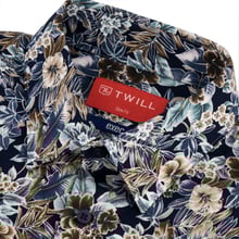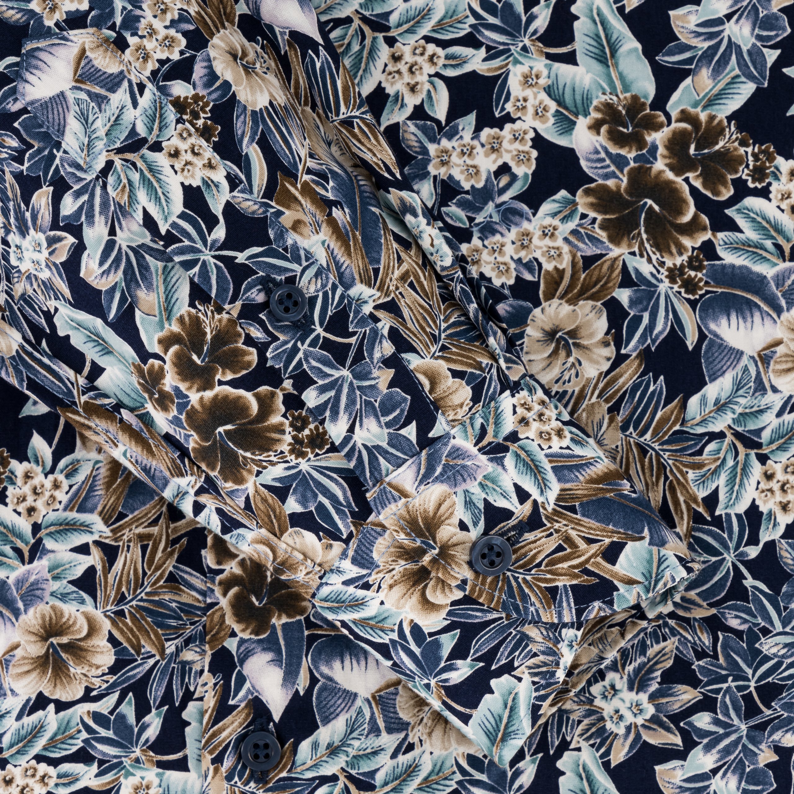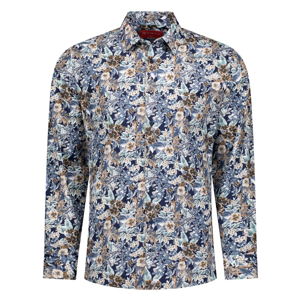 Step into sophistication with this floral-printed navy dress shirt from the Exec Collection, where art meets executive style. This shirt showcases a vibrant floral pattern in a palette of soothing blues, creams, browns, and a hint of mint, all set against a deep navy background, offering a striking yet refined look. Crafted from superior cotton, it guarantees both comfort and durability, making it an ideal choice for the busy professional who values quality in their attire. The semi-cutaway collar provides a contemporary twist to the classic shirt design, enhancing the visual appeal of the floral print. Single cuffs maintain a traditional elegance, while the bonded collar stays ensure the shirt retains its crisp appearance throughout the day. With a slim fit that contours to the body, this shirt is perfect for those who seek to make a subtle yet powerful statement in any professional setting. It’s machine washable at 30 degrees for convenience, and for an impeccable finish, ironing whilst damp is recommended. This shirt isn’t just clothing; it’s an investment in your professional and personal style.