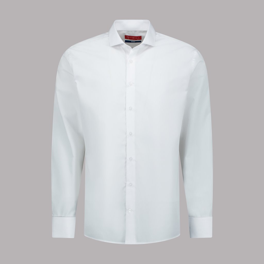 Experience the pinnacle of professional style with this Exec Range white shirt, meticulously crafted from 100% superior cotton in a refined poplin weave. Tailored to a slim fit, it features a full cut-away collar with collar stays for a sharp, contemporary edge, paired with double cuffs for a sophisticated finish. The French side and arm hole seams enhance durability and structure, ensuring a flawless silhouette. Designed for the discerning executive, this shirt is machine washable at 30 degrees and achieves optimal crispness when ironed damp, blending impeccable craftsmanship with practical care.