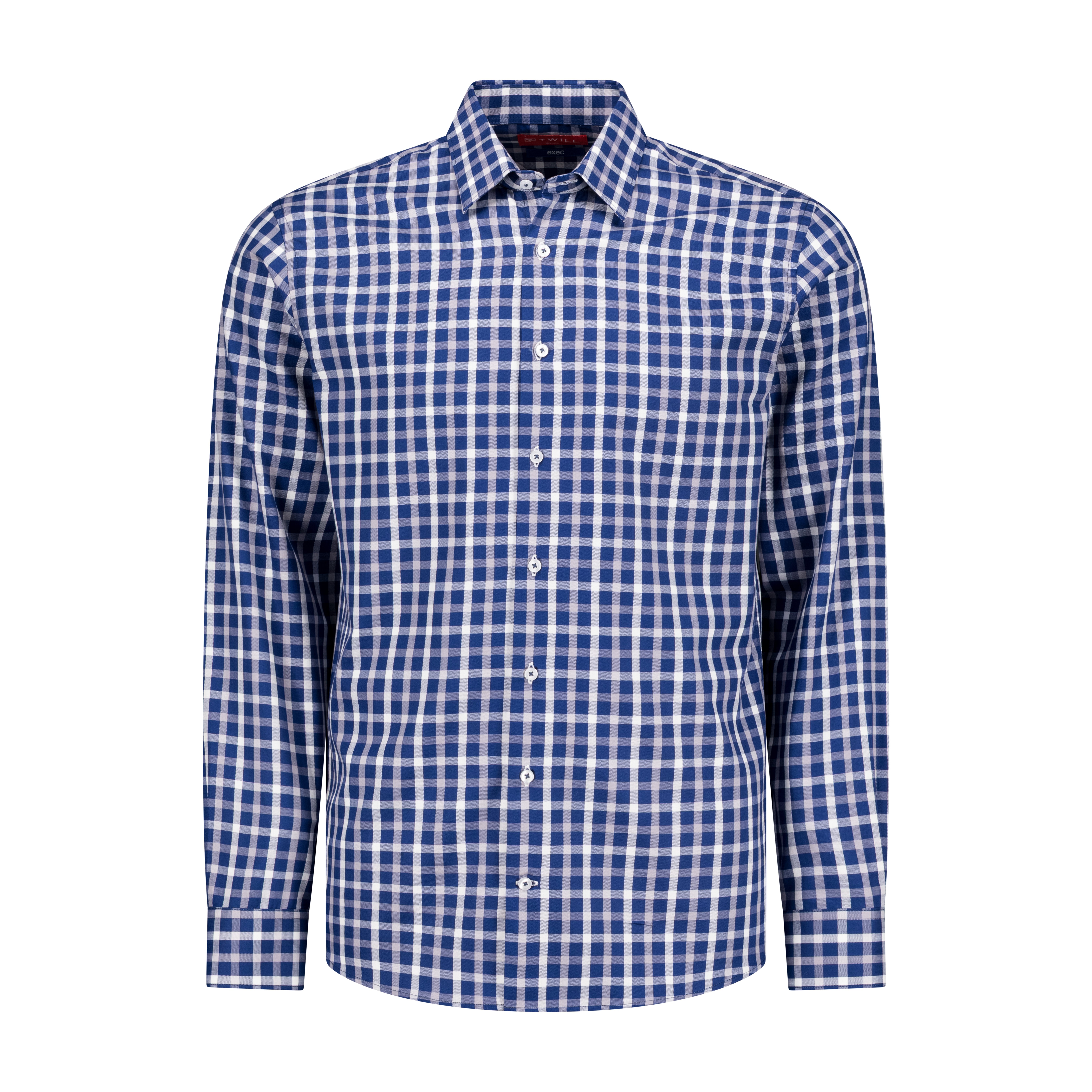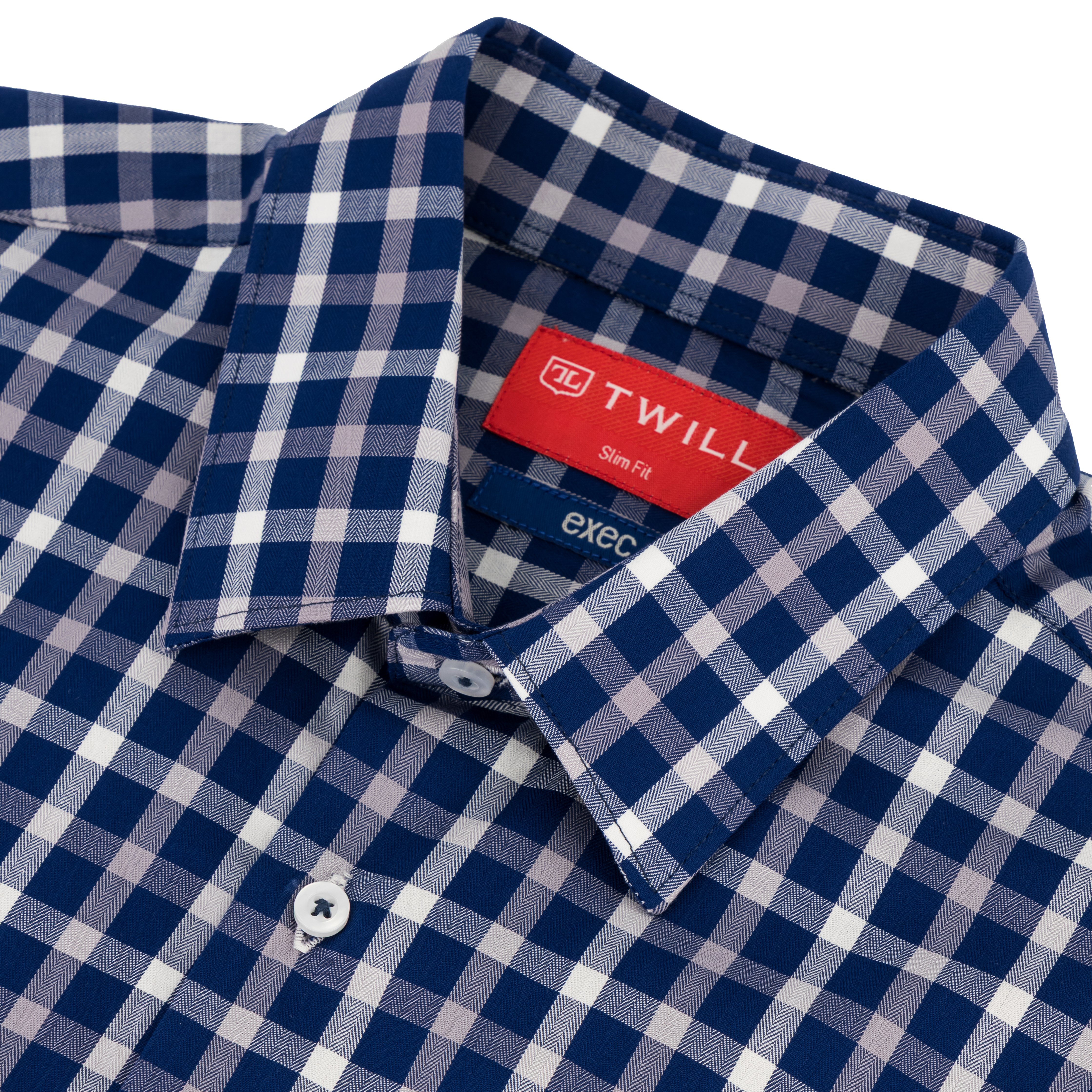 Crafted from 100% premium cotton, this navy tartan check dress shirt from the Executive Collection combines bold style with refined craftsmanship. The slim fit design delivers a sleek, modern silhouette, while the navy tartan check pattern adds a distinctive, sophisticated flair, perfect for professional or formal settings. The semi cutaway collar, featuring fixed collar stays, ensures a crisp, polished look. Single cuffs offer a streamlined, versatile finish suitable for everyday wear. Designed for convenience, this shirt is machine washable at 30°C, making it an ideal choice for the discerning gentleman. A striking, high-quality addition to any executive wardrobe.