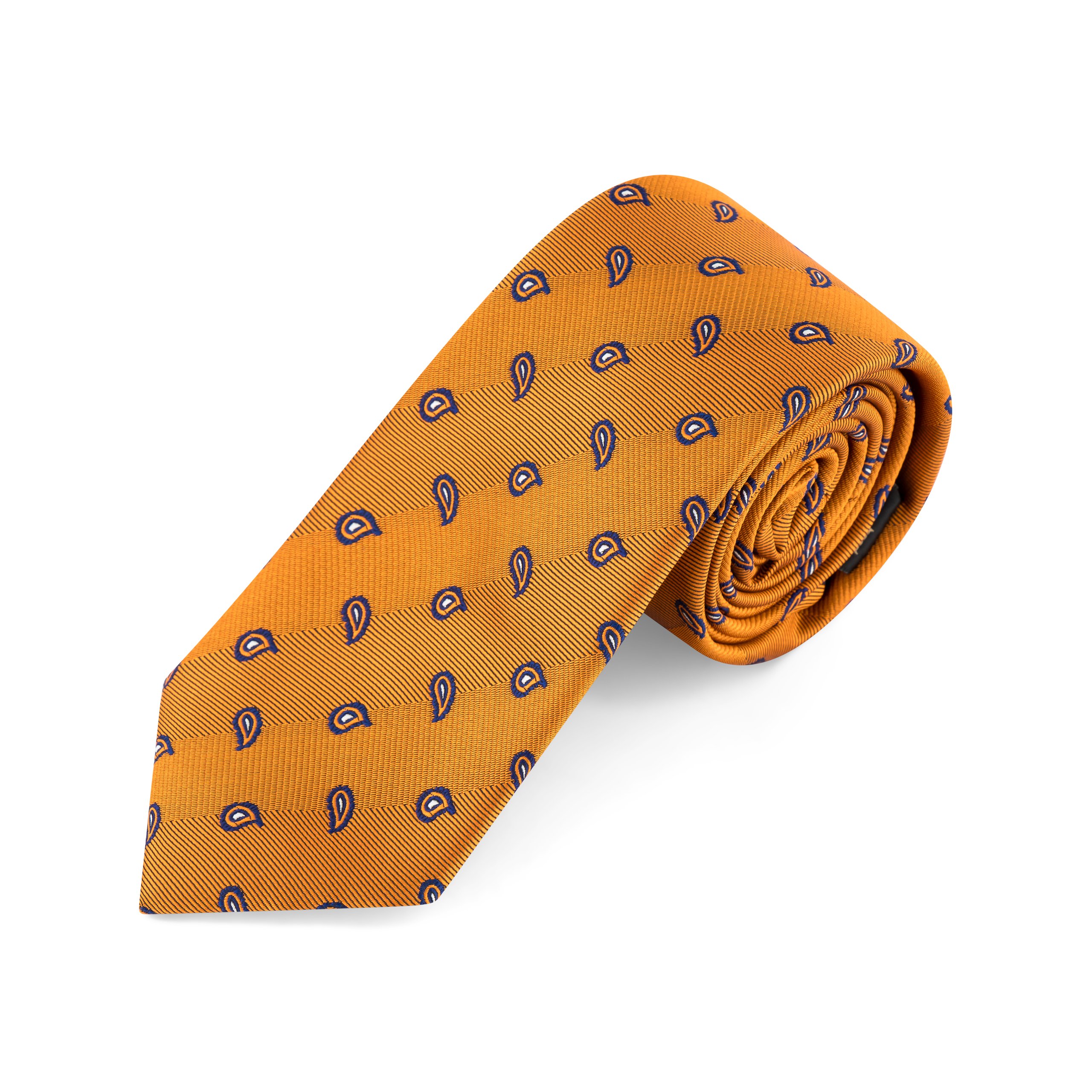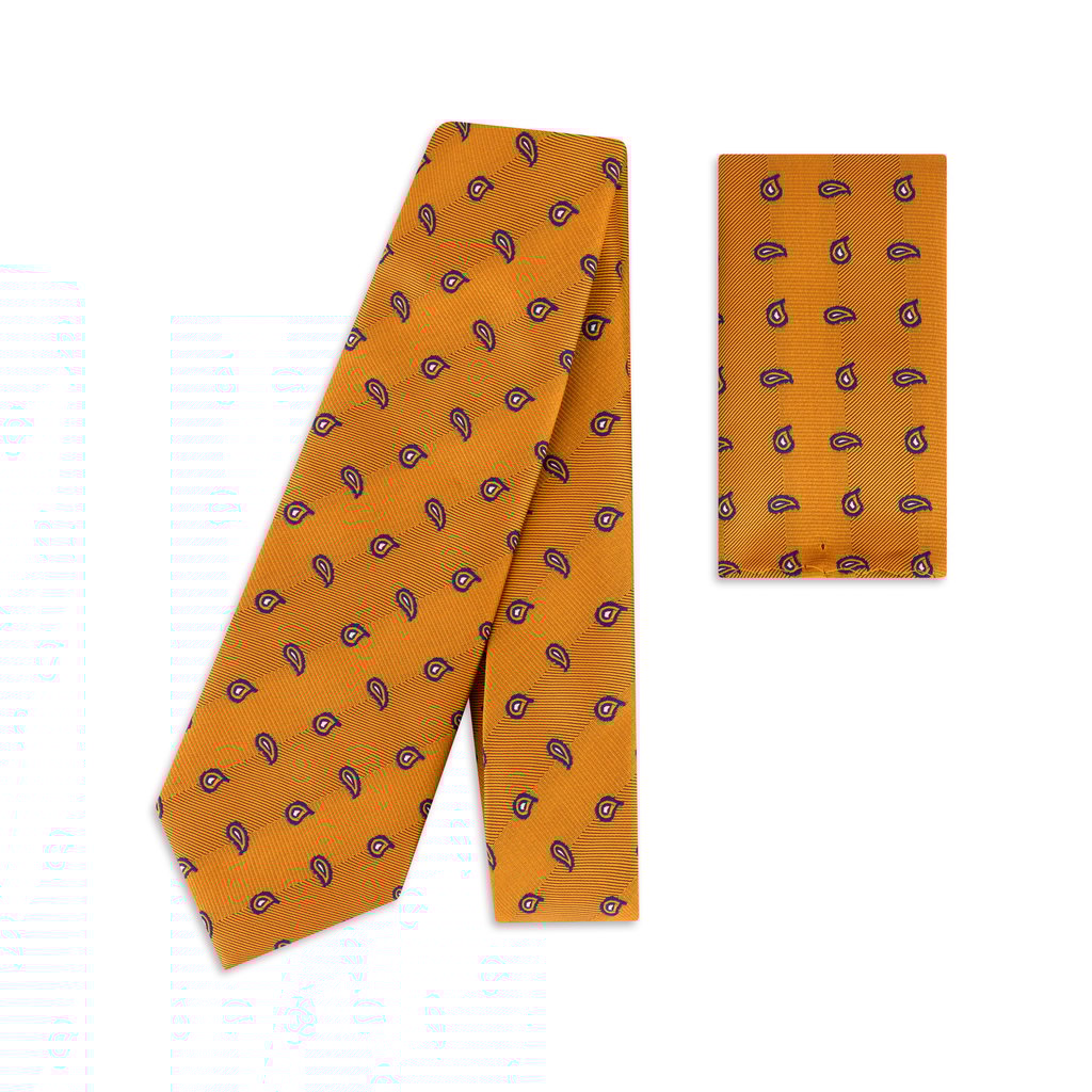Add a touch of timeless artistry to your wardrobe with the Gold and Navy Woven Paisley Teardrop Tie and Matching Pocket Square Set, an exquisite choice for the modern gentleman. Fashioned from 100% premium microfibre, this set offers a luxurious feel and exceptional durability, highlighted by a deep gold base adorned with an intricate navy paisley teardrop design. The tie, measuring 7.5cm in width and 150cm in length, provides a perfectly balanced silhouette, ideal for elevating both formal events and professional ensembles. Accompanied by a coordinating pocket square, this set ensures a unified and distinguished appearance. For care, it may be hand washed for convenience, though dry cleaning is recommended to preserve its impeccable quality. A standout piece for those who seek to blend tradition with bold sophistication.
