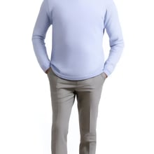 Discover refined style with our Men’s Light Blue Cashmere-Blend V-Neck Sweater, crafted for the modern gentleman who values sophistication and comfort. Made from a premium cashmere-blend fabric, this sweater delivers an exceptionally soft and luxurious feel. Its subtle light blue shade pairs effortlessly with a range of formal and smart-casual outfits, while the classic V-neck design ensures timeless appeal. The knitted construction offers lightweight warmth and breathability, and the regular fit provides a tailored silhouette for comfortable wear. Complete with ribbed detailing at the cuffs, hem, and neckline, this sweater is a versatile essential for the discerning man seeking quality and elegance.