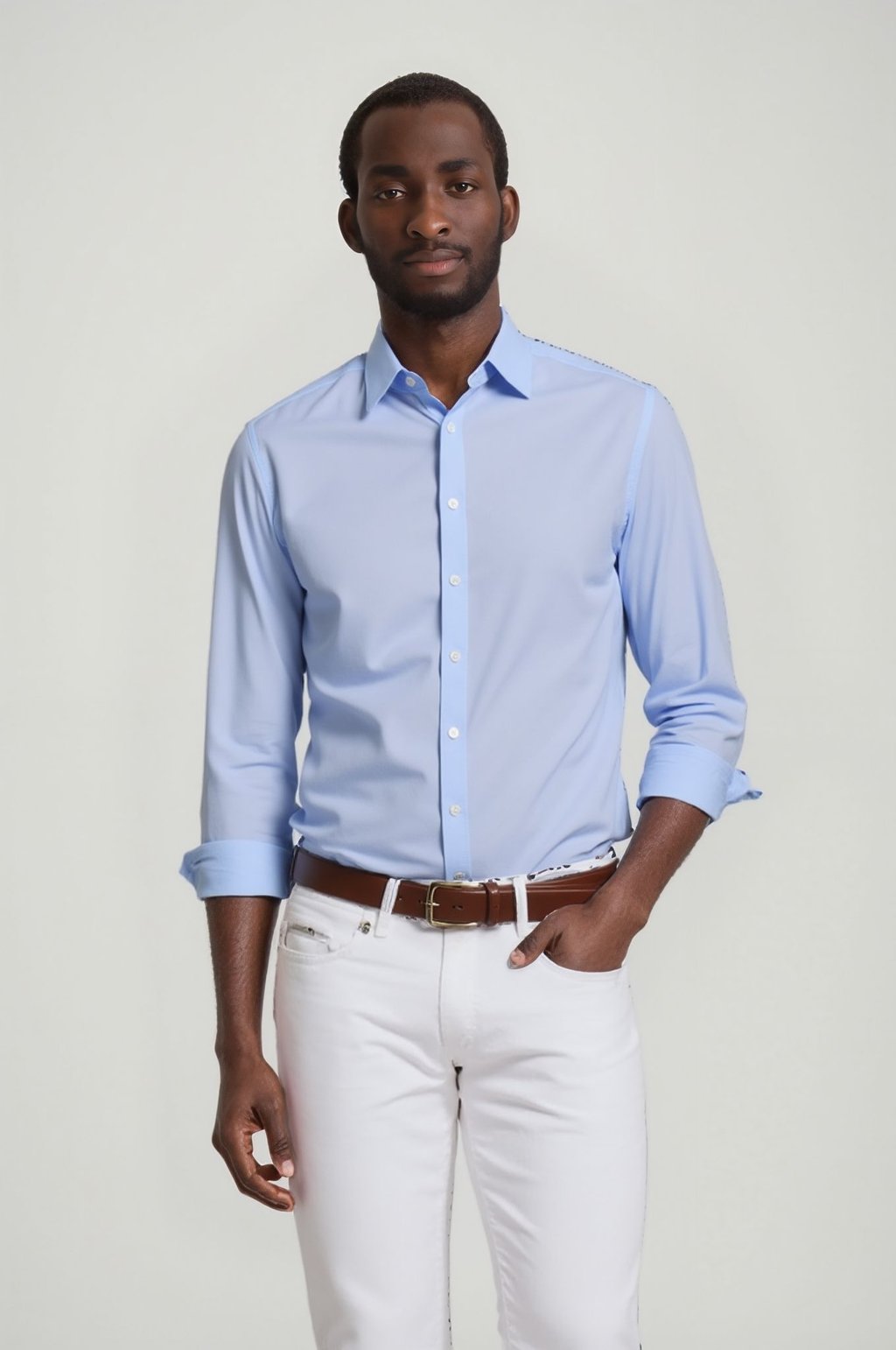 From the Twill Traveller range, this light blue Oxford shirt is designed for effortless style and practicality. The cotton-rich fabric offers breathable comfort with a crisp finish, while the easy care and easy iron treatment keeps it looking sharp with minimal effort. A semi cutaway collar with inset stays and single cuffs provide a refined yet relaxed look. French seams on the sides and arm holes enhance durability and comfort. Machine wash at 30 degrees. Iron while damp for best results. Do not tumble dry.