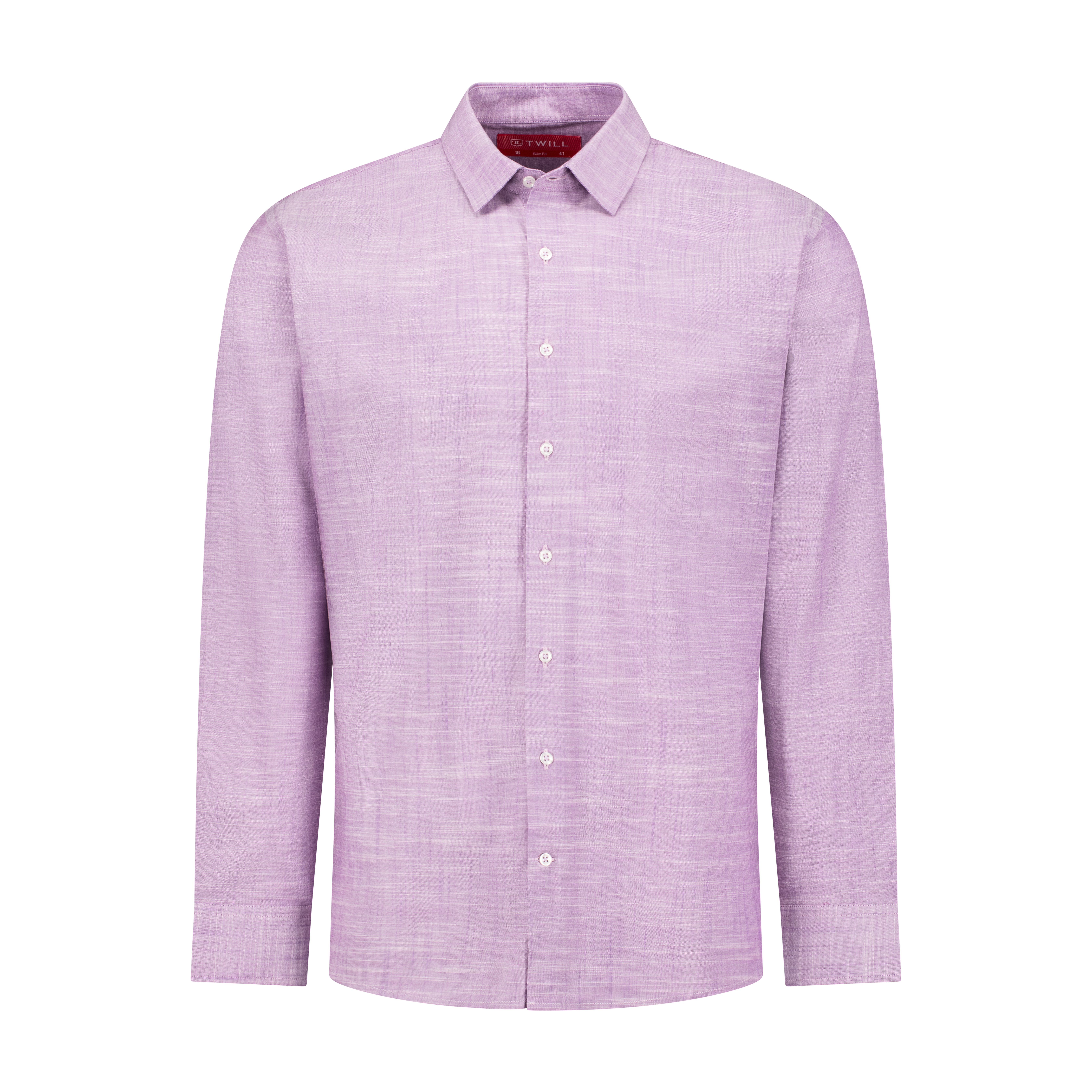 This lilac chambray shirt is tailored in a slim fit from 100% cotton, offering a lightweight and breathable feel perfect for warmer months. The semi cutaway collar with inset collar stays adds a refined touch, while single cuffs keep the look versatile. Chambray’s natural moisture-wicking properties enhance comfort, and French seams provide durability and a smooth finish. For best results, machine wash at 30 degrees and iron while damp. Avoid tumble drying to preserve the fabric’s texture and structure.