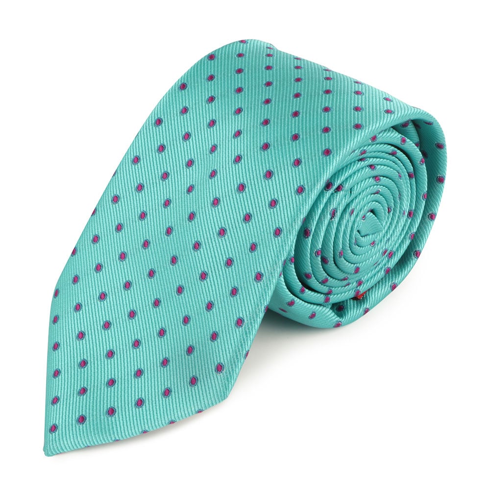 - Mint tie with purple polka dot design