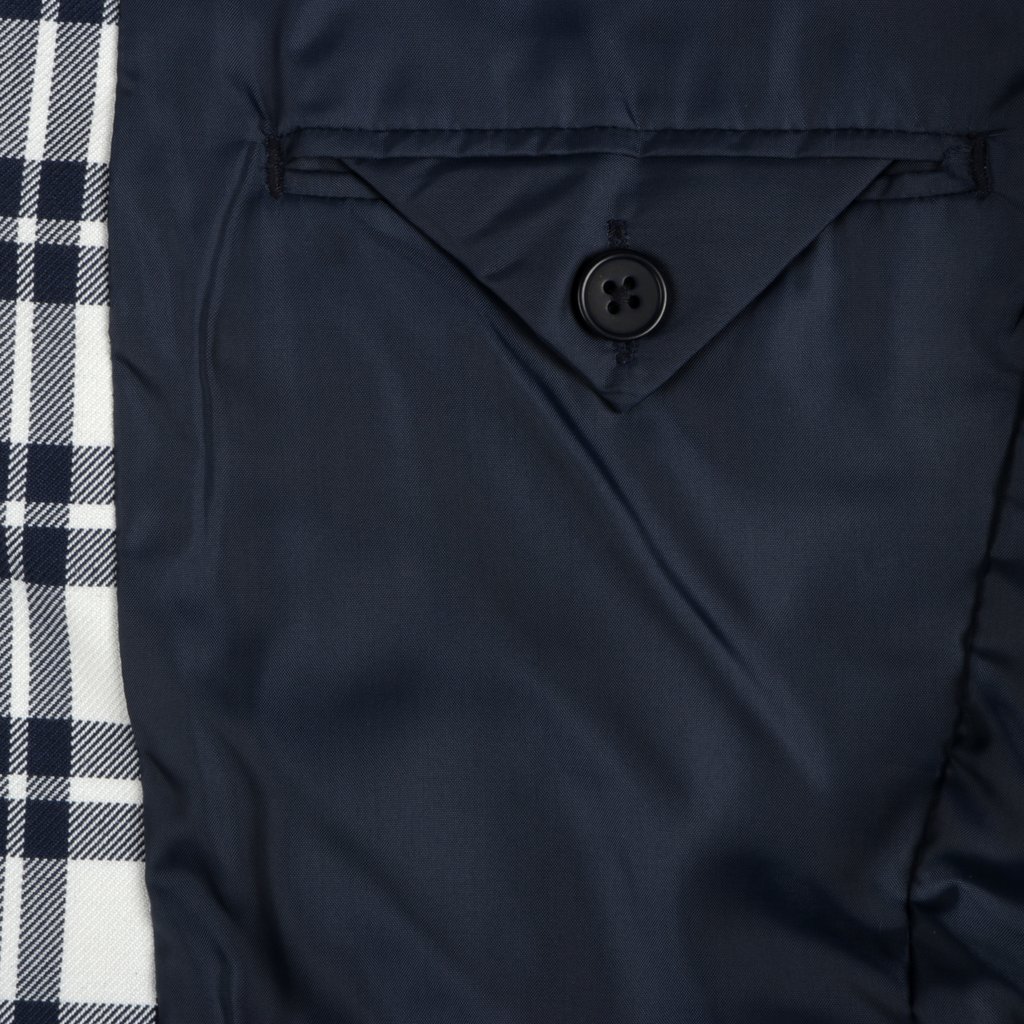 - Navy and white check pattern adds a touch of sophistication and elegance