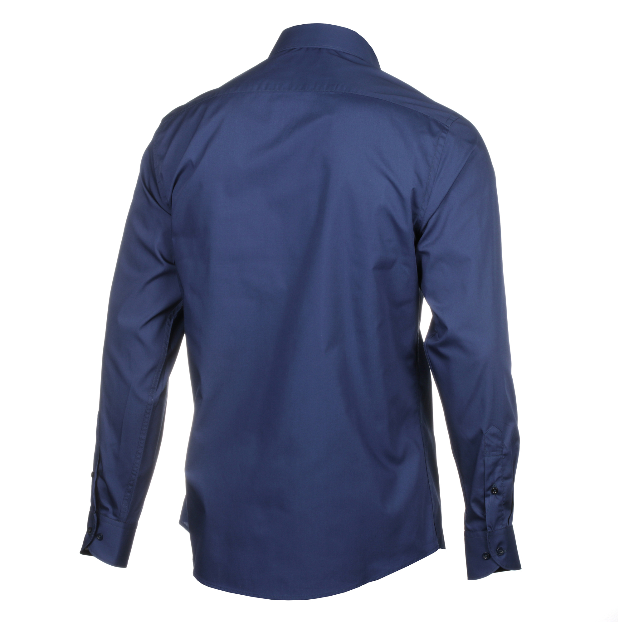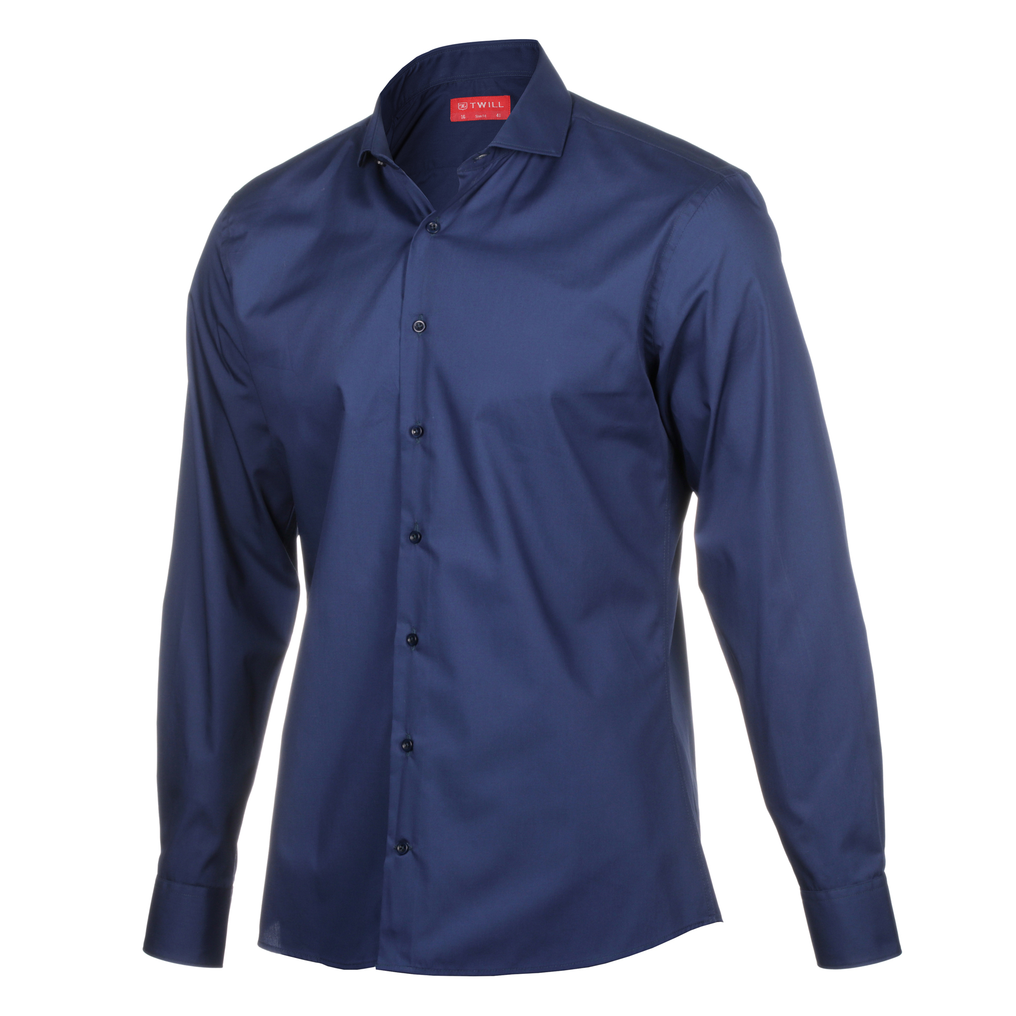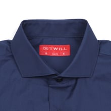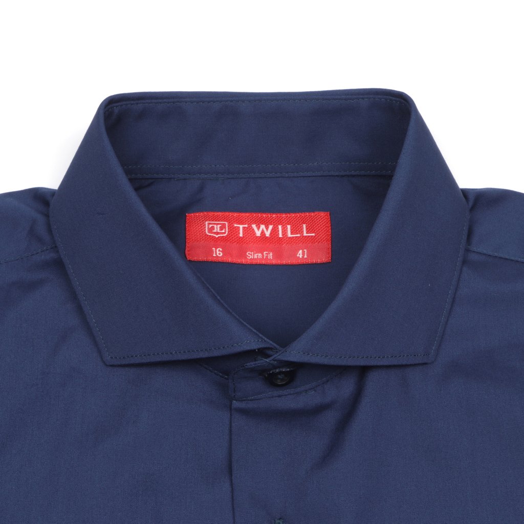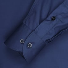 Elevate your formal style with this navy slim fit poplin cotton dress shirt. Crafted from high-quality 100% cotton, this shirt features a classic poplin weave that provides a crisp and smooth texture.