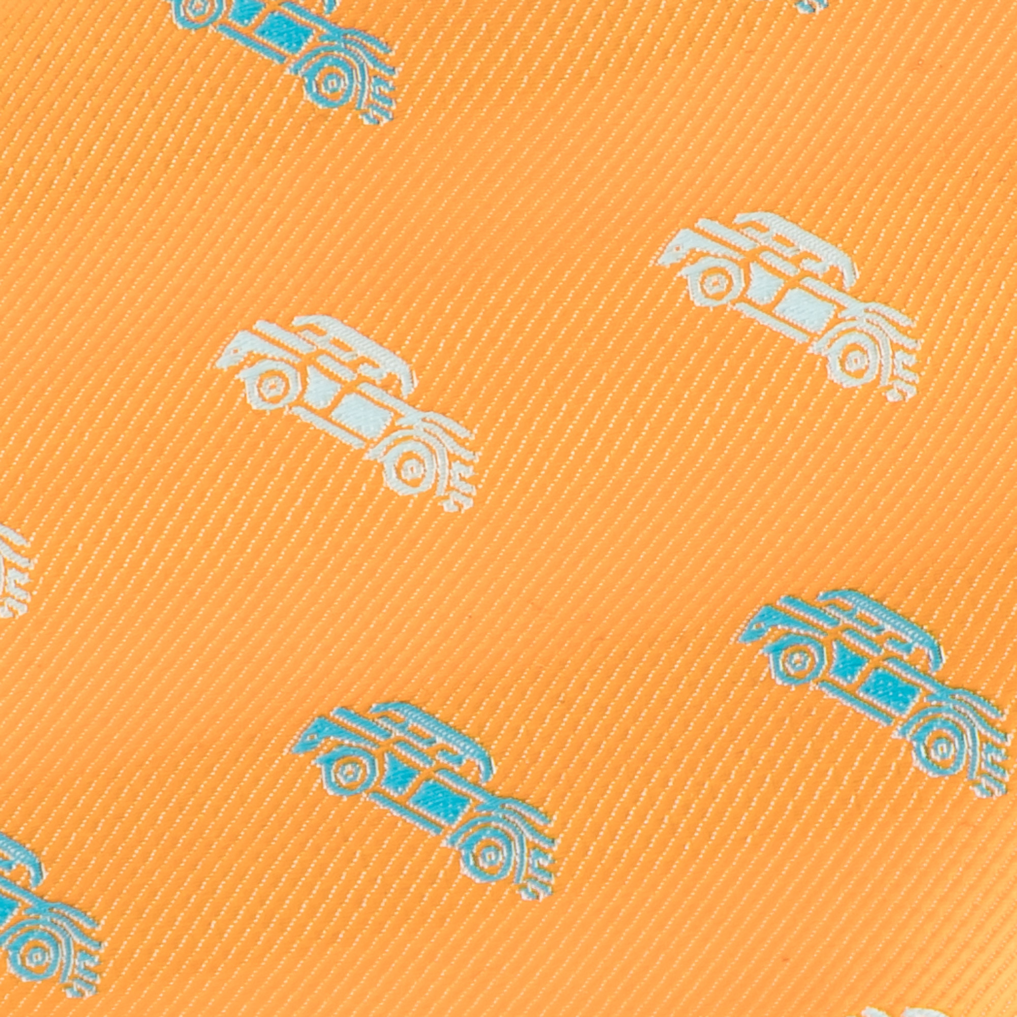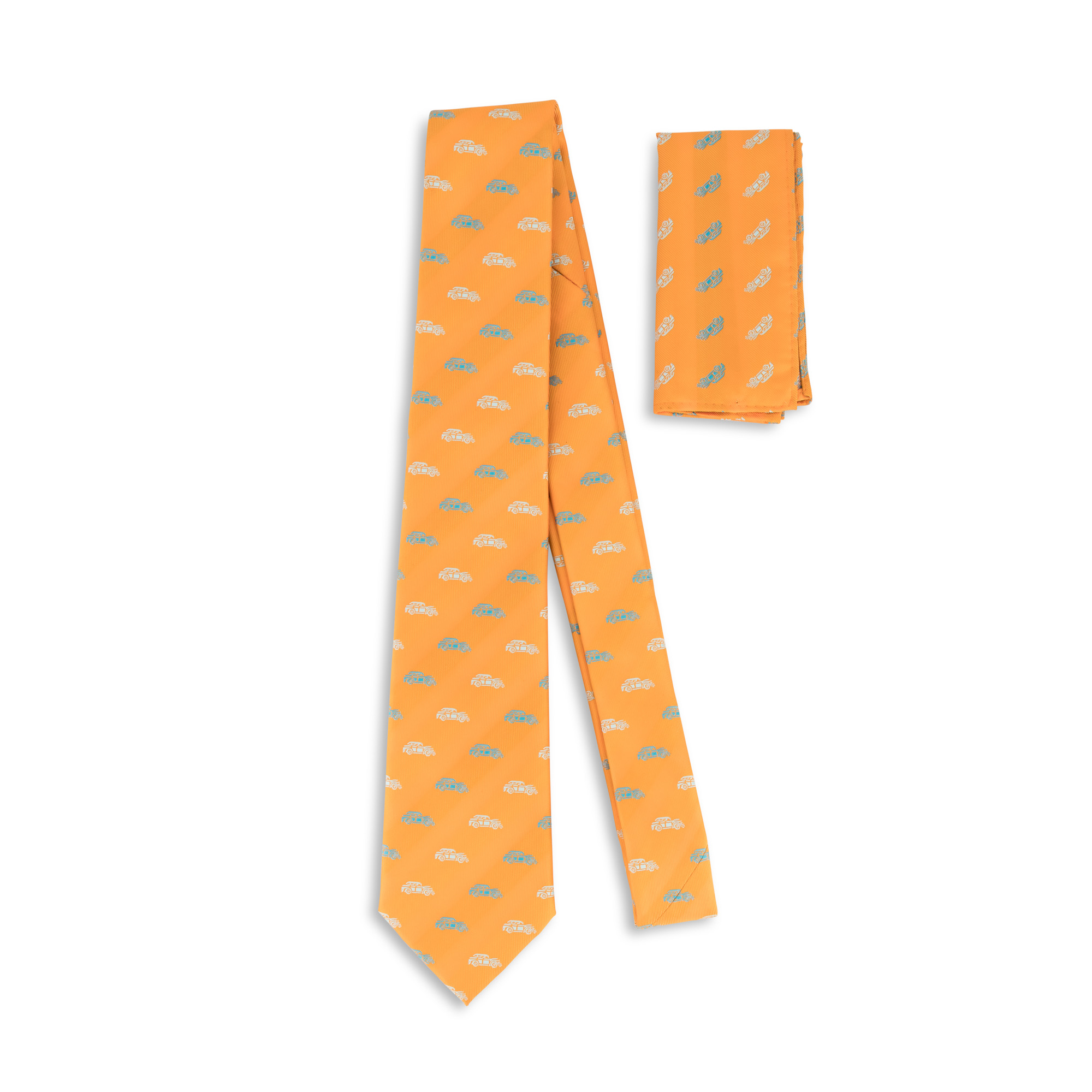 Add a touch of personality to your outfit with this orange woven tie, featuring a stylish car motif. The set includes a microfibre pocket square (15cm x 15cm) that complements the tie, making it an ideal choice for car enthusiasts.