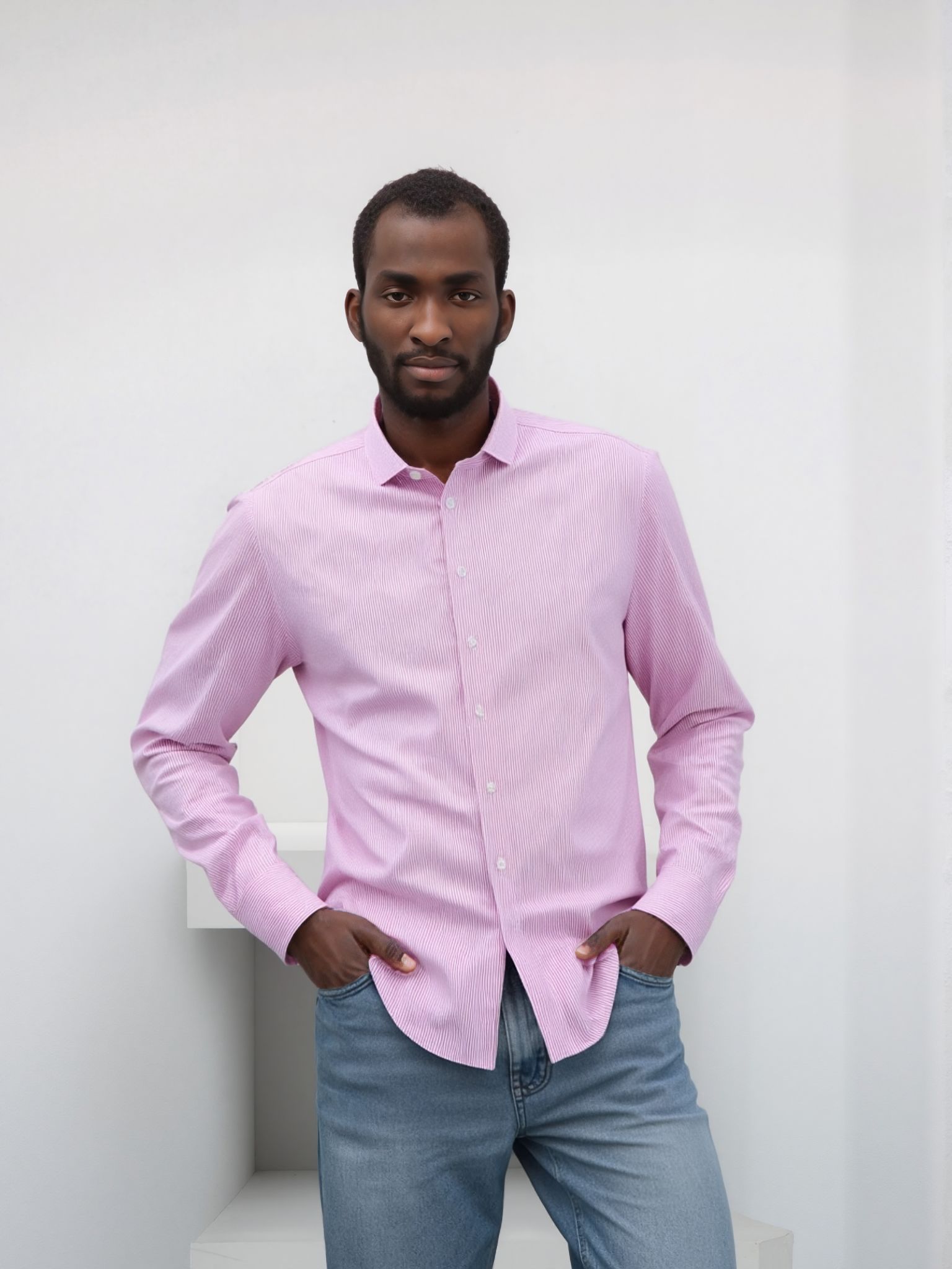 - Pink and white vertical stripe pattern