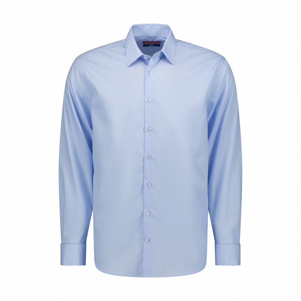 This powder blue dress shirt boasts a sophisticated poplin weave in luxurious executive range cotton. The regular fit design offers a comfortable and relaxed silhouette, perfect for those who prefer a more spacious fit. The semi cut away collar is versatile, suitable for both formal and semi-formal occasions, and it accommodates a tie comfortably. The double cuffs add a touch of elegance and sophistication, allowing for the option of cufflinks to elevate your formal look. This powder blue poplin dress shirt is an excellent choice for those who appreciate comfort, style, and versatility in their formal wear.