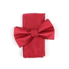 Introduce classic style into your formalwear with our Red Satin Finish Bowtie and Pocket Square Set.