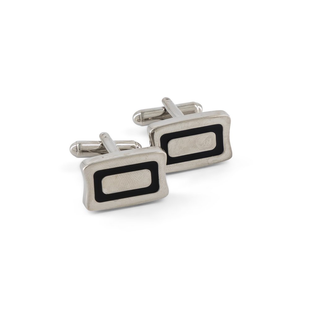 Add a touch of understated elegance to your formal wardrobe with our Polished Silver Rectangular Cufflinks, featuring rounded corners and a bold black enamel inlay. Expertly crafted from high-quality silver, these cufflinks are polished to a radiant finish, offering a perfect balance of contemporary style and classic sophistication. The rounded rectangular design ensures a sleek, comfortable fit, while the secure swivel-back closure provides ease and dependability. Ideal for weddings, black-tie events, or professional settings, these cufflinks are beautifully packaged in an elegant gift box, making them a distinguished gift or a timeless addition to your collection.