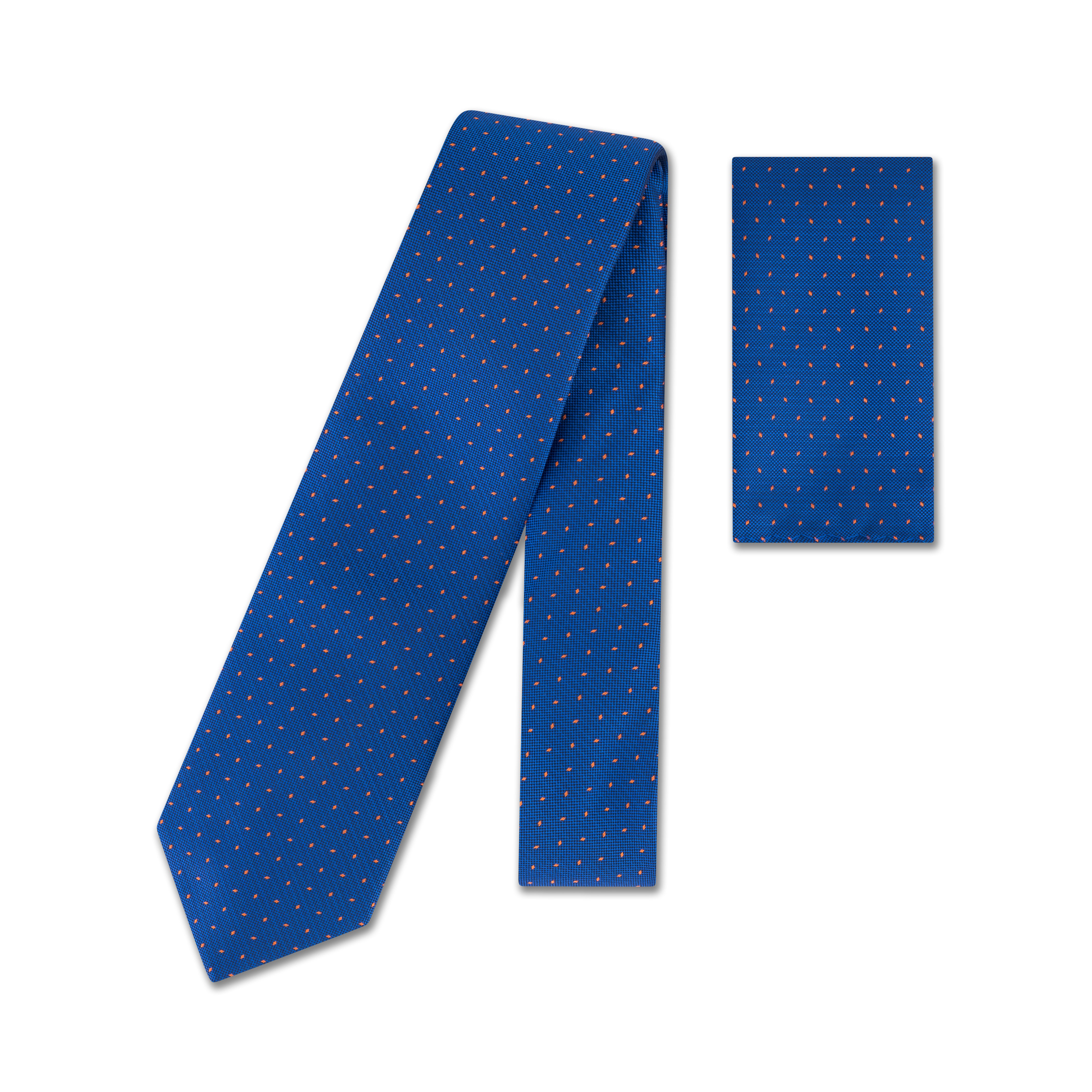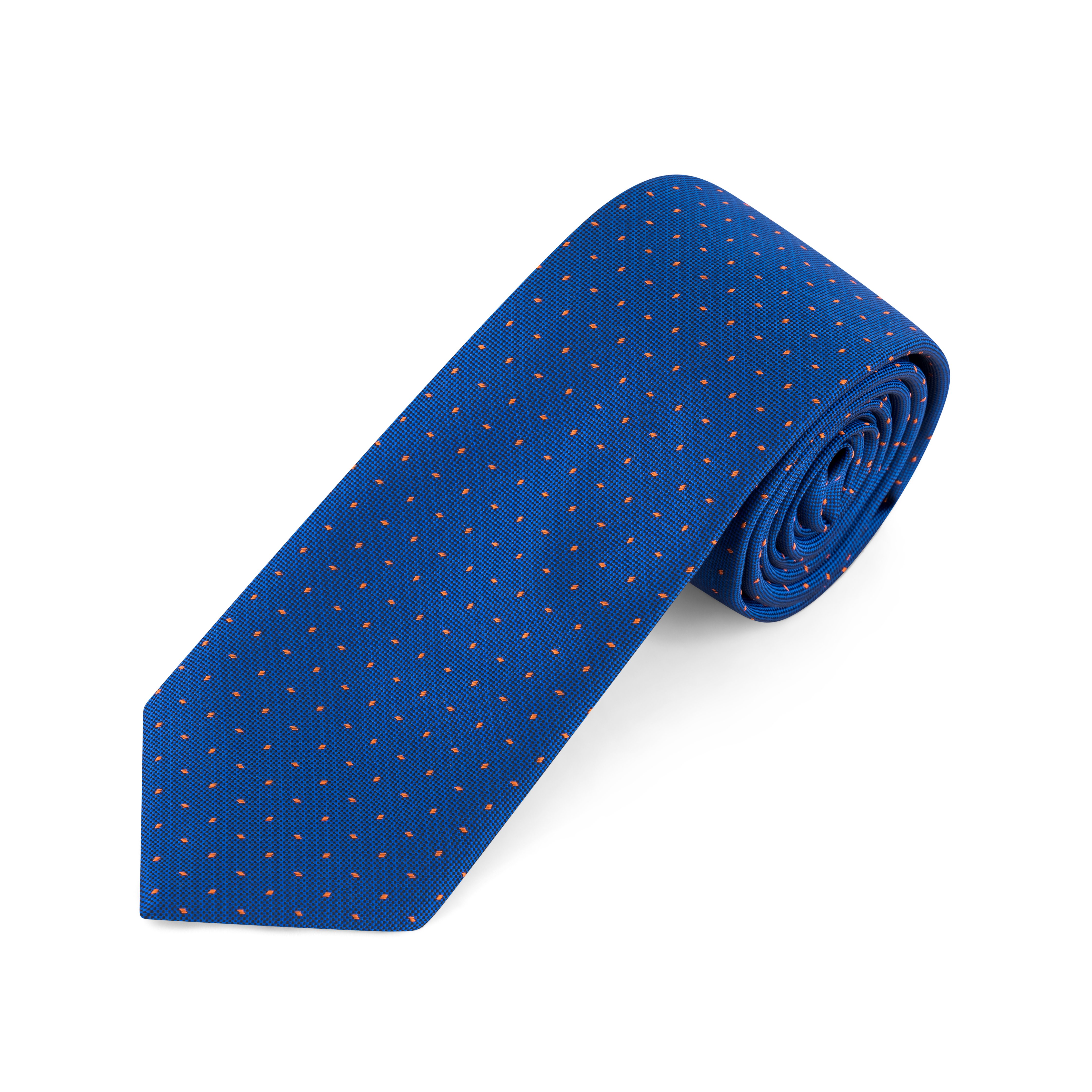 Vibrant and eye-catching, this tie features bold orange polka dots set against a rich royal blue background. The high-contrast colour pairing brings a playful yet polished energy to your outfit—perfect for standing out at events or adding flair to your weekday wardrobe.