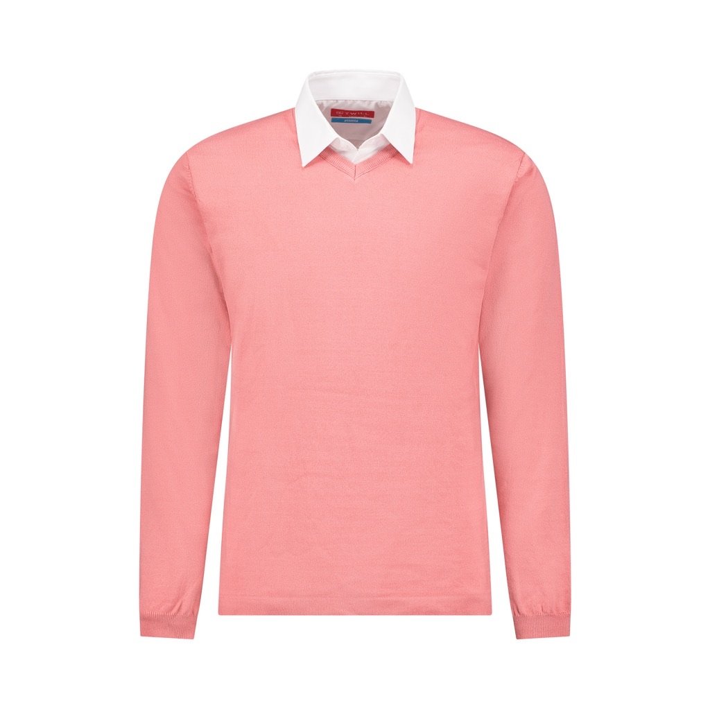 Discover refined style with our men’s navy cashmere-blend V-neck sweater, crafted for the modern gentleman who values sophistication and comfort. Made from a premium acrylic-blend fabric, this sweater delivers an exceptionally soft and luxurious feel. Its soft salmon shade pairs effortlessly with a range of formal and smart-casual outfits, while the classic V-neck design ensures timeless appeal. The knitted construction offers lightweight warmth and breathability, and the regular fit provides a tailored silhouette for comfortable wear. Complete with ribbed detailing at the cuffs, hem, and neckline, this sweater is a versatile essential for the discerning man seeking quality and elegance.