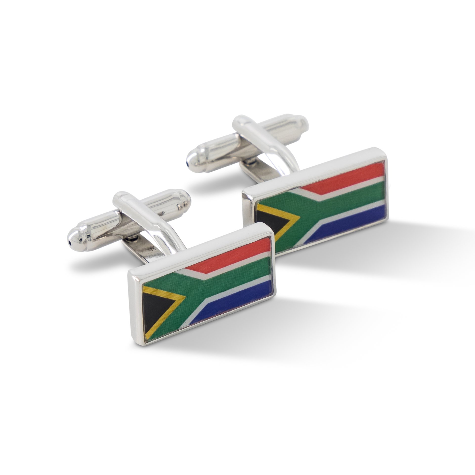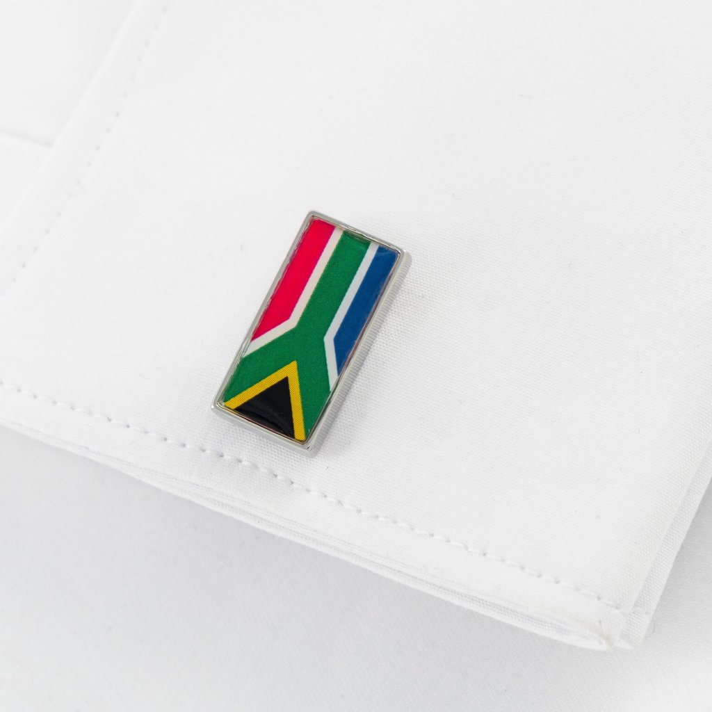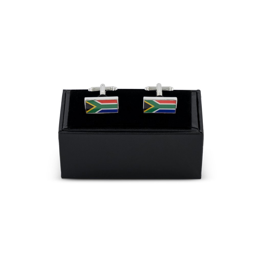 Showcase your patriotism with these rectangular South African flag cufflinks, featuring the iconic colours and design of the national flag. Presented in a stylish gift box, these cufflinks are perfect for formal events, business meetings, or as a thoughtful gift.