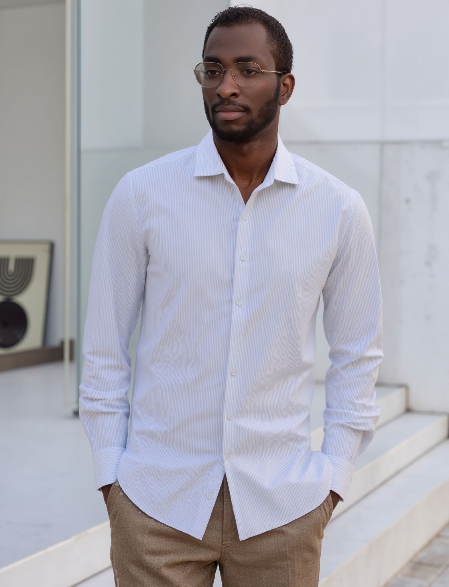 - White with navy pinstripes