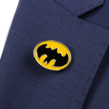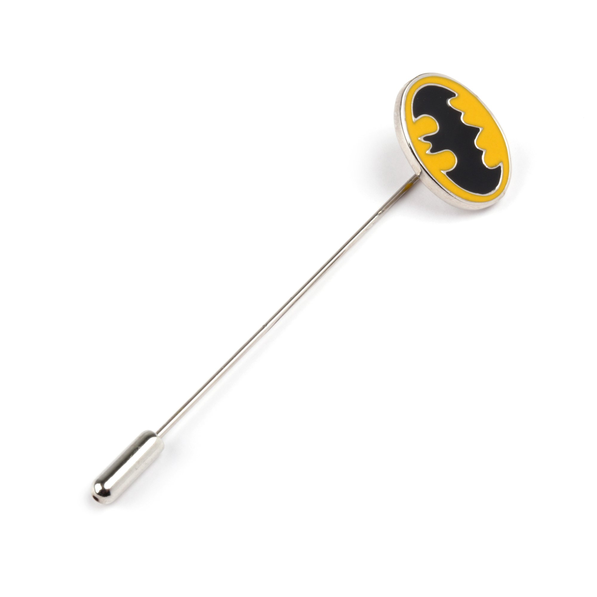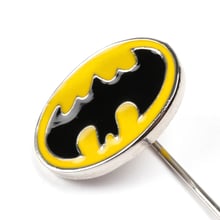 Make a bold statement with this yellow and black Batman logo lapel pin. Featuring the iconic emblem in its most recognizable color scheme, this accessory adds a touch of character to any formal or casual outfit. Crafted for durability and style, it’s lightweight and easy to wear. Be sure to remove before washing or dry cleaning to maintain its finish and shape.